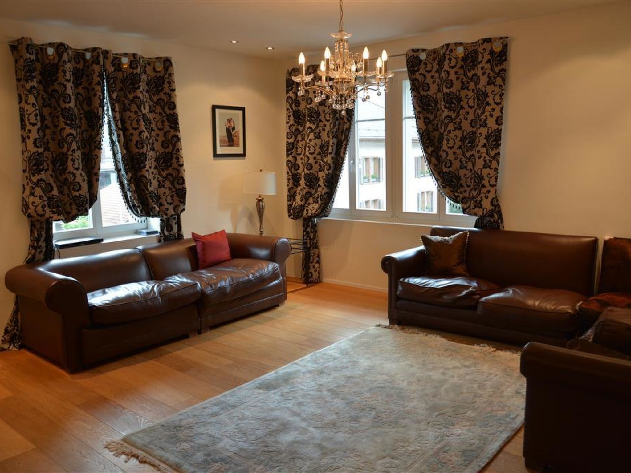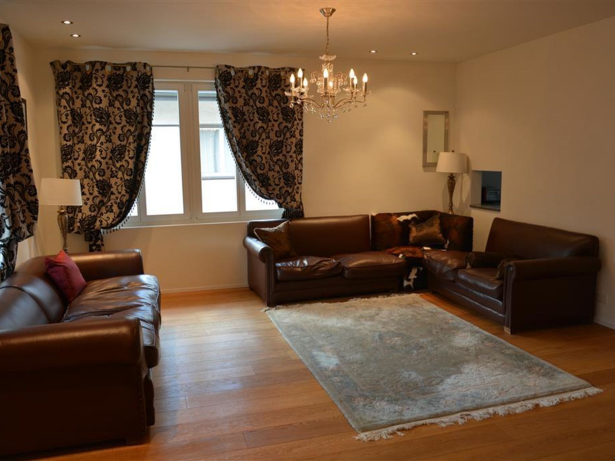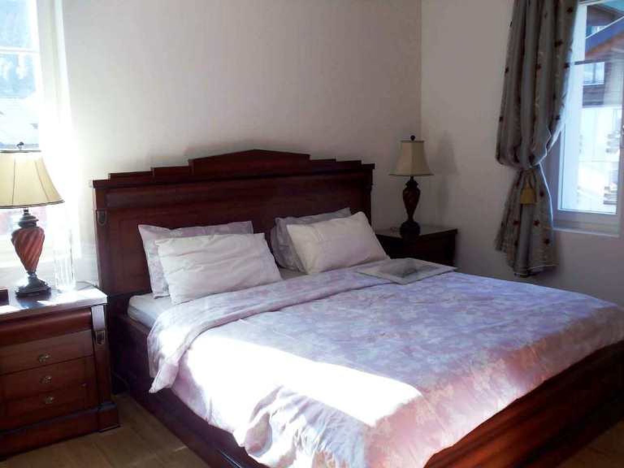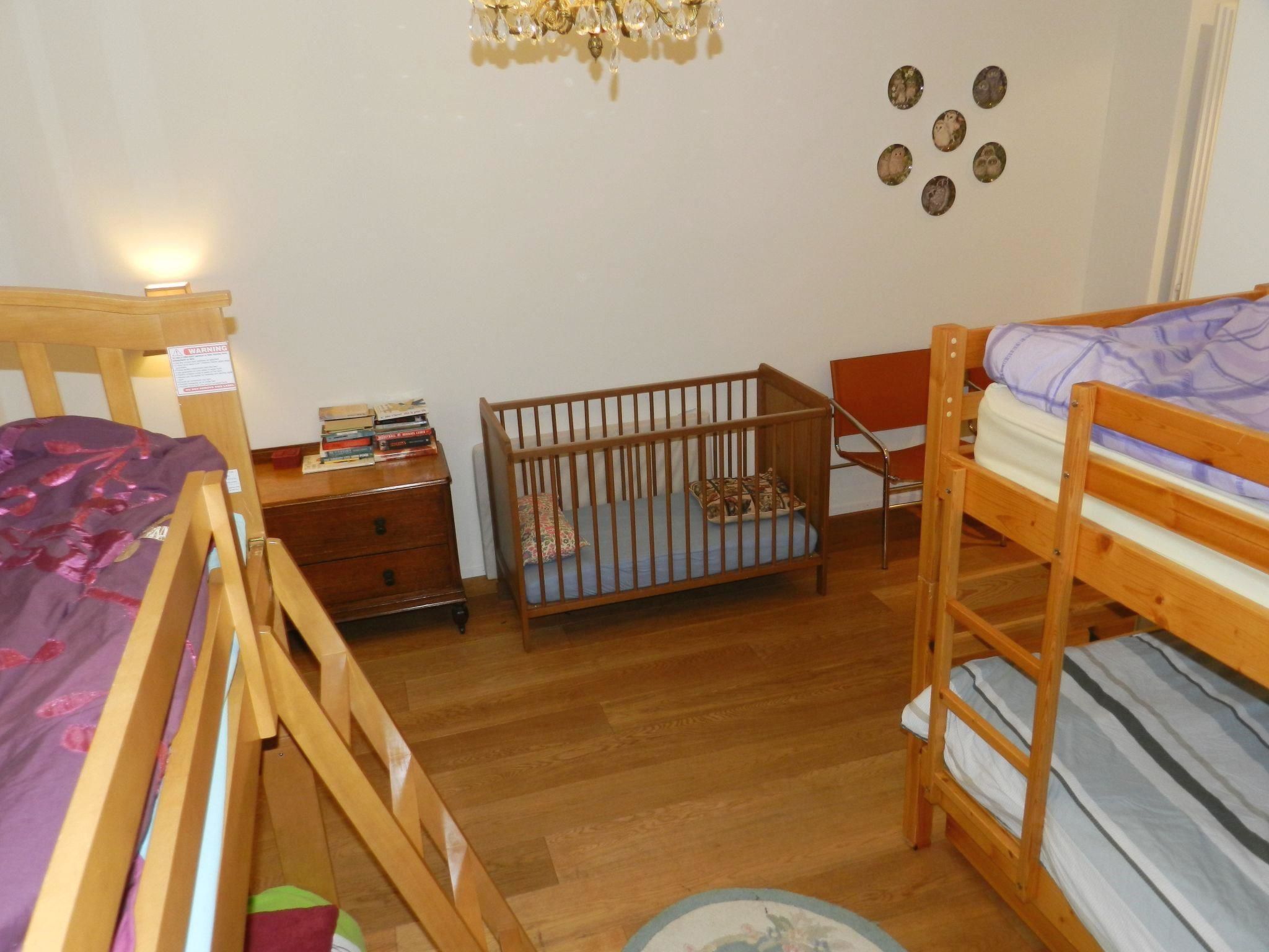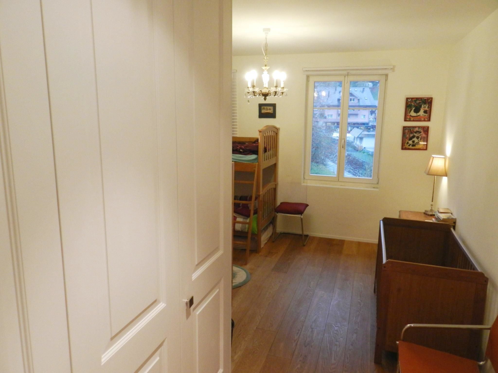 Mit Charme eingerichtete 5-Zimmerwohnung (ca. 200m2) im 2. Stock eines Mehrfamilienhauses. 2 Schlafzimmer mit Doppelbett (150x190cm), Schrank und je einem Badezimmer (1x Dusche/WC, 1x Badewanne/WC). 1 Schlafzimmer mit zwei Etagenbetten (je 90x120cm) und einer zusätzlichen Matratze und Kleiderschrank. 1 Badezimmer mit Dusche/WC. Geräumiges Wohnzimmer mit Sofa, TV, Essbereich sowie grosser geschlossener Küche (ausgestattet mit Backofen, Geschirrspüler, Kühlschrank und Gefrierfach, Mikrowelle, Induktionsherd, Kapsel-Kaffeemaschine (Nespresso) sowie Fondue-Set. Abstellraum für Schuhe und Kleider. Ski- und Lagerraum. WiFi. Kinderreisebett (60x120cm) und Holzkinderbett (70x140cm) inkl. Bettwäsche und Kinderhochstuhl vorhanden.