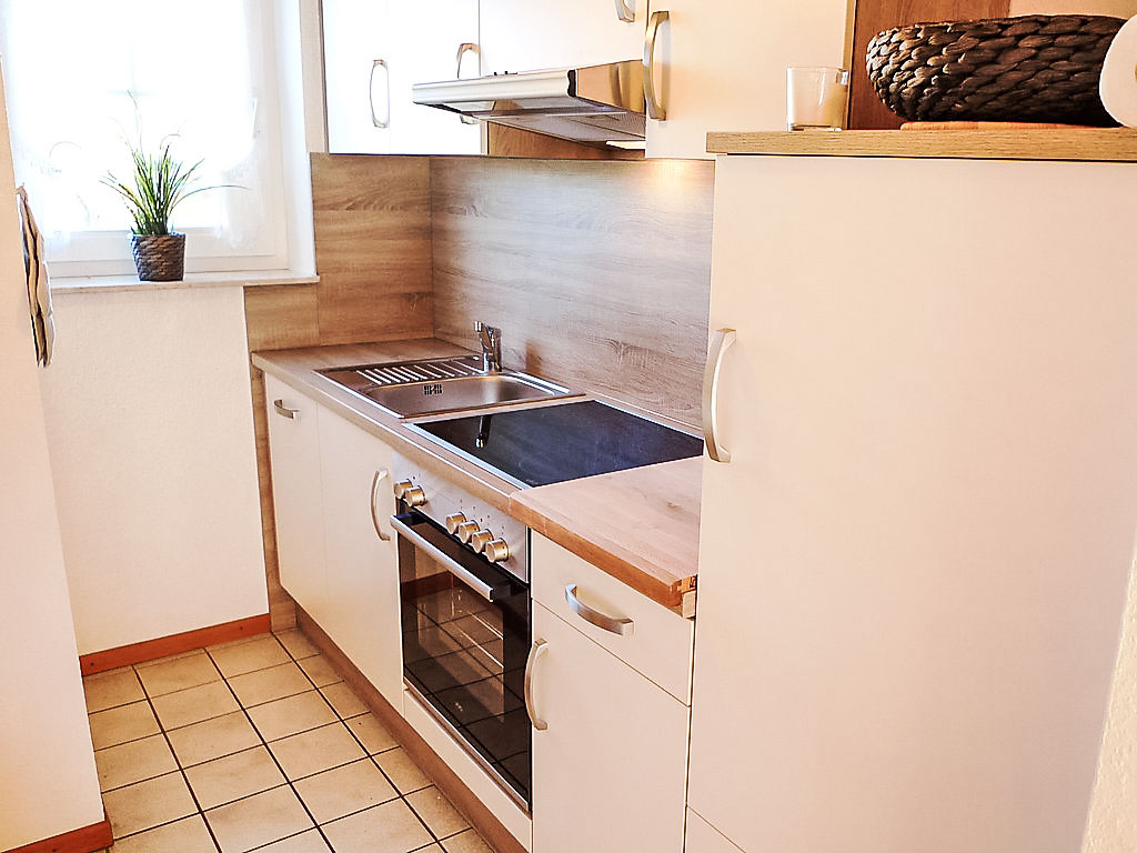 4-Zimmer-Doppelhaushälfte 70 m2 auf 3 Stockwerken, im Erdgeschoss. Schön eingerichtet: Wohn-/Esszimmer mit Sat-TV (Flachbildschirm), Radio. Offene Küche (Backofen, Mikrowelle, elektrische Kaffeemaschine). Sep. WC. Obergeschoss: 1 abgeschrägtes Zimmer mit 1 Doppelbett (2 x 90 cm, Länge 200 cm). 1 abgeschrägtes Zimmer mit 2 Betten (90 cm, Länge 200 cm). Dusche/WC. Dachgeschoss: 1 abgeschrägtes, offenes Zimmer, ohne Schrank mit 1 Doppeldiwanbett (160 cm, Länge 190 cm), TV-Anschluss. Terrasse 12 m2, Südwestlage. Terrassenmöbel. Bitte beachten: Nichtraucher-Haus. Maximal 1 Haustier/Hund erlaubt. Zugang zum offenen Zimmer im Dachgeschoss durch das Zweibettzimmer im Obergeschoss. Ab 26.11.22 steht das Zimmer im Dachgeschoss nicht mehr zur Verfügung.