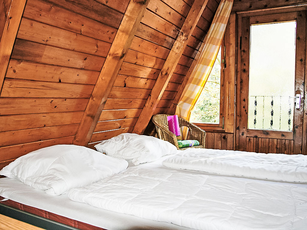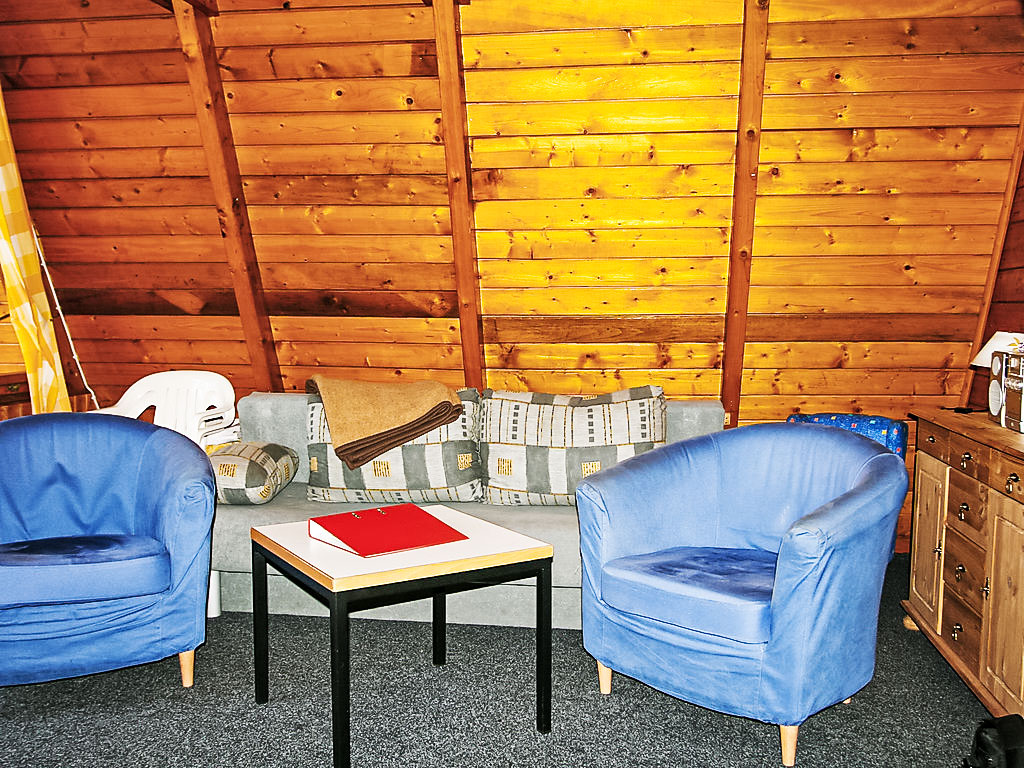 3-Zimmer-Haus 65 m2 auf 2 Stockwerken, im Erdgeschoss. Abgeschrägt: Wohn-/Esszimmer mit 1 Diwanbett, Kabel-TV und Stereoanlage. Ausgang zur Terrasse. Kleine Küche (4 Kochplatten, Backofen, Mikrowelle, elektrische Kaffeemaschine). Dusche/WC. Obergeschoss: (steile Treppe) 1 abgeschrägtes Zimmer mit 2 Betten. 1 abgeschrägtes Doppelzimmer. E-Heizung. Terrasse teilweise überdacht. Sitzplatz. Zur Verfügung: Telefon (extra). Internet (Wireless LAN, gratis). Bitte beachten: Nichtraucher-Haus. Rauchmelder. Maximalbelegung: 5 Personen (ein Baby oder Kleinkind als 6. Person ist NICHT möglich).