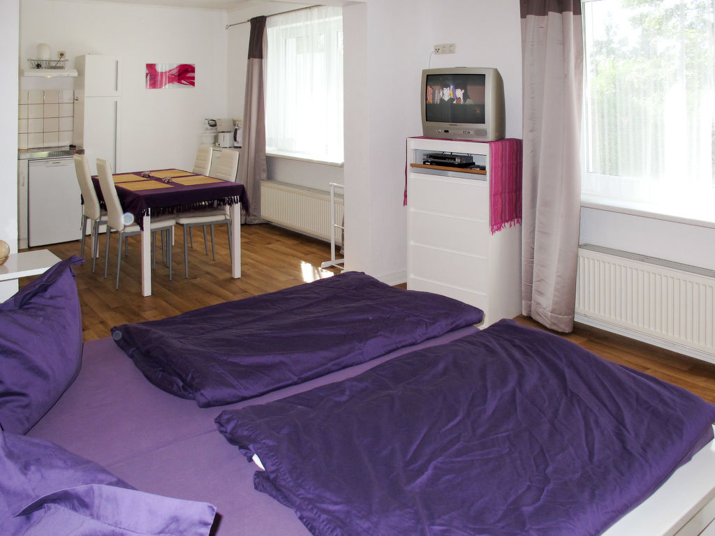 Einfamilienhaus "Alexorella". 150 m vom Zentrum von Godern, am Ortsrand, 2.5 km vom Zentrum von Pinnow, 10 km vom Zentrum von Schwerin, 200 m vom See. Zur Alleinbenutzung: Grundstück 900 m2 (eingezäunt) mit Rasen. Im Hause: Tischfussball. Parkplatz (für 3 Autos) auf dem Grundstück. Supermarkt 2.5 km, Grasstrand 200 m, Hallenbad 10 km. Golfplatz (18 Loch) 10 km.