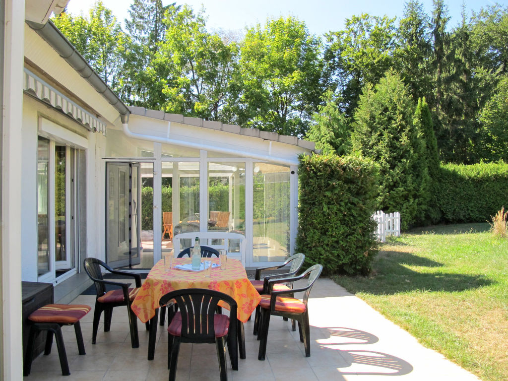 3-Zimmer-Haus 130 m2. Gemütlich eingerichtet: Wohn-/Schlafzimmer mit 1 Bett, 1 Ausziehbett, Esstisch und Sat-TV (Flachbildschirm), Radio und DVD. Ausgang zur Terrasse. Durchgangszimmer mit 1 Doppelbett, Esstisch, Küchenblock und Dusche/WC. Ausgang zur Terrasse. 1 Doppelzimmer. Spielzimmer. Küche (Backofen, Geschirrspüler, 4 Glaskeramikherd Platten, Toaster, Wasserkocher, Mikrowelle, Tiefkühler, elektrische Kaffeemaschine). Dusche/WC. G-Heizung. Parkettböden. Terrasse überdacht, Südostlage Terrasse, Westlage. Terrassenmöbel, Gartengrill (mobil). Zur Verfügung: Bügeleisen, Kinderhochstuhl, Babybett. Internet (Wireless LAN). Bitte beachten: Nichtraucher-Unterkunft. Rauchmelder.