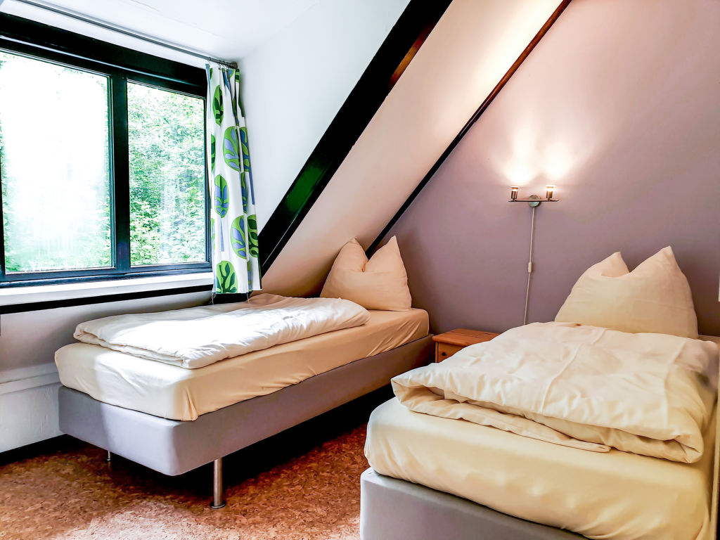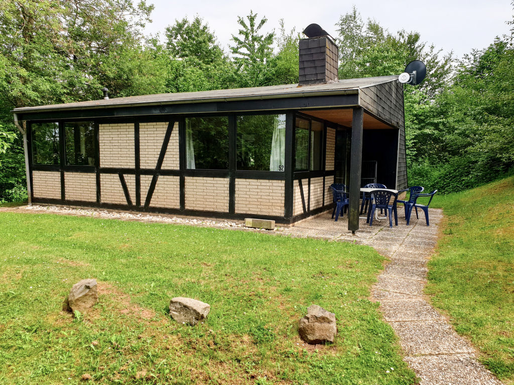 "Haus 52", 4-Zimmer-Bungalow 60 m2. Teilweise abgeschrägt, gemütlich eingerichtet: Wohn-/Esszimmer 30 m2 mit Sat-TV (Flachbildschirm). Ausgang zur Terrasse. 1 Zimmer 9 m2 mit 1 Doppelbett (160 cm, Länge 190 cm). 2 Zimmer 6 m2, jedes Zimmer mit 2 Betten (80 cm, Länge 190 cm). Kochnische 5 m2 (4 Kochplatten, Mikrowelle, elektrische Kaffeemaschine). Dusche/WC. E-Heizung. Terrasse 12 m2 teilweise überdacht. Terrassenmöbel, Gartengrill. Zur Verfügung: Internet (Wireless LAN, extra). Bitte beachten: Nichtraucher-Haus. Maximal 2 Haustiere/Hunde erlaubt. Rauchmelder.