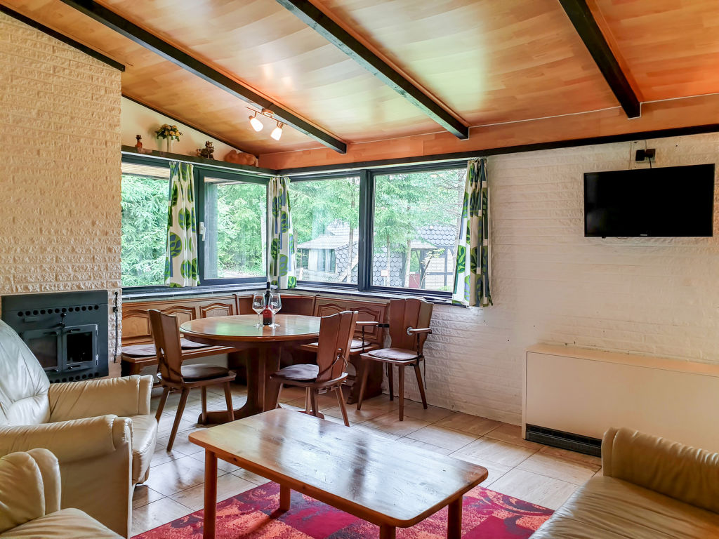 Ferienanlage "Waldferienpark Gerolstein". Ausserhalb des Ortes, 3 km vom Zentrum von Gerolstein, alleinstehende, ruhige Lage auf einem Hügel, 100 m vom Waldrand, 100 m vom Bach, im Grünen. Zur Mitbenutzung: Hallenbad beheizt (70 m2, 130 cm tief) mit Innentreppe. Dusche/WC im Poolbereich, Kinderspielplatz (Rutschbahn, Schaukel, Sandkasten), Streichelzoo. Zur Alleinbenutzung: Garten mit Rasen. In der Anlage: Restaurant, Bar, Frühstücksraum, Aufenthaltsraum, Billard, Trampolin, Sonnenterrasse. Brötchenservice möglich (extra). Treppenweg bis zum Haus. Parkplatz auf dem Grundstück. Einkaufsgeschäft 3 km, Lebensmittelgeschäft 2.5 km, Supermarkt 2.5 km, Einkaufszentrum 3 km, Fahrradverleih 6 km, Bushaltestelle "Gerolstein" 3 km, Bahnstation "Gerolstein" 3 km, Freibad 3 km, Badesee 3.2 km. Golfplatz (18 Loch) 18 km, Tennis 3 km, Minigolf 50 m, Reitstall 4 km, Wanderwege ab Haus 50 m. Nahe gelegene Sehenswürdigkeiten: Kylltal, Burg Eltz. Bekannte Seen in der Umgebung sind gut erreichbar: Pulvermaar 24 km. Bitte beachten: Fahrzeug empfohlen. Der Waldferienpark verfügt weiterhin über Airhockey und Aussenschach. Einrichtungen zur Mitbenutzung (teilweise extra). REISEN UND SPAREN: 5 Tage wohnen, 4 Tage zahlen im gesamten Zeitraum.