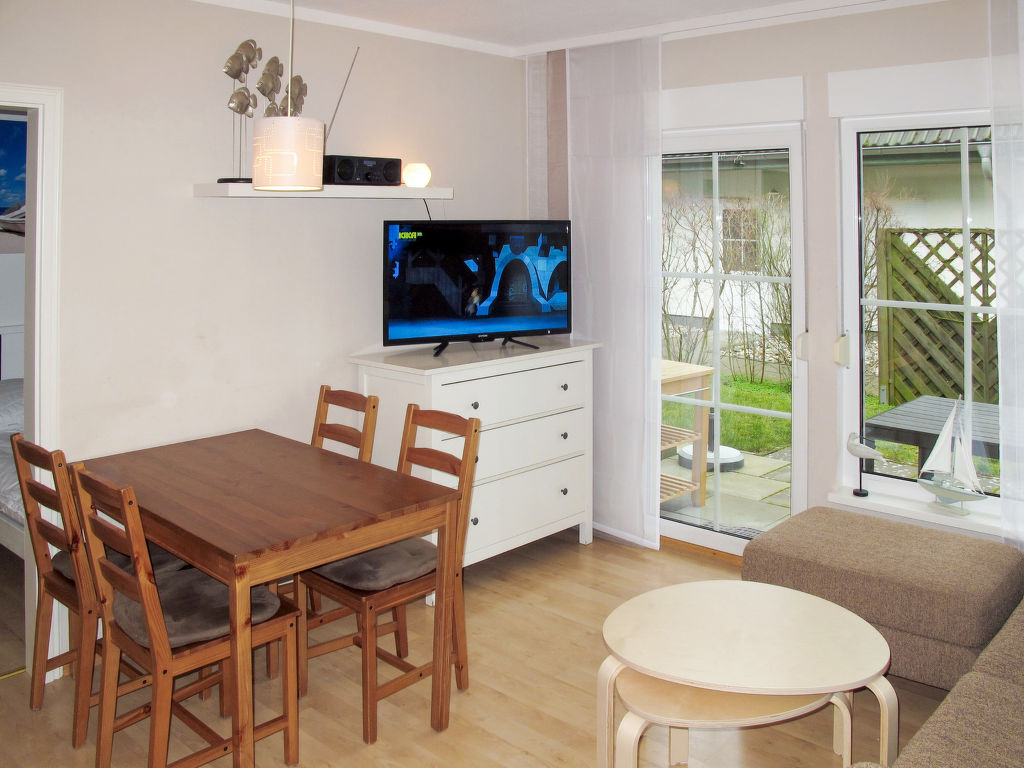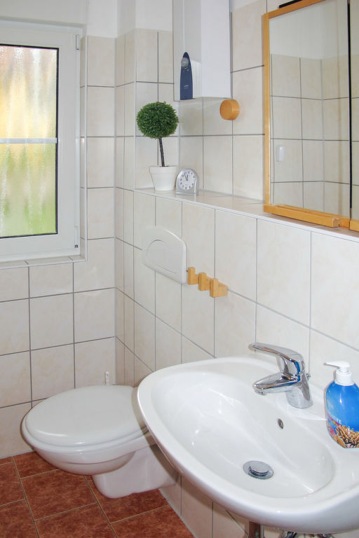 3-Zimmer-Wohnung 40 m2, im Erdgeschoss. Renoviert im Jahre 2018, zweckmässig und schön eingerichtet: Wohn-/Esszimmer mit Esstisch und Sat-TV (Flachbildschirm), Stereoanlage und DVD. Ausgang zur Terrasse. 1 Zimmer mit 1 Doppelbett. 1 Zimmer mit 1 x 2 Etagenbetten. Offene Küche (Geschirrspüler, 2 Glaskeramikherd Platten, Toaster, Wasserkocher, Mikrowelle, elektrische Kaffeemaschine). Dusche/WC. E-Heizung. Terrasse 15 m2, überdacht. Terrassenmöbel, Liegestühle (2), Abstellkammer. Zur Verfügung: Kinderhochstuhl, Babybett. Internet (Wireless LAN, gratis). Bitte beachten: Nichtraucher-Unterkunft. Maximal 1 Haustier/Hund erlaubt. Rauchmelder.