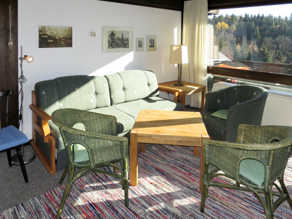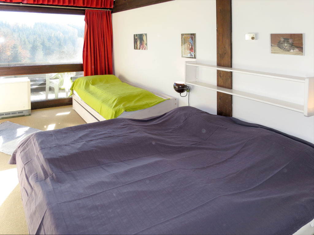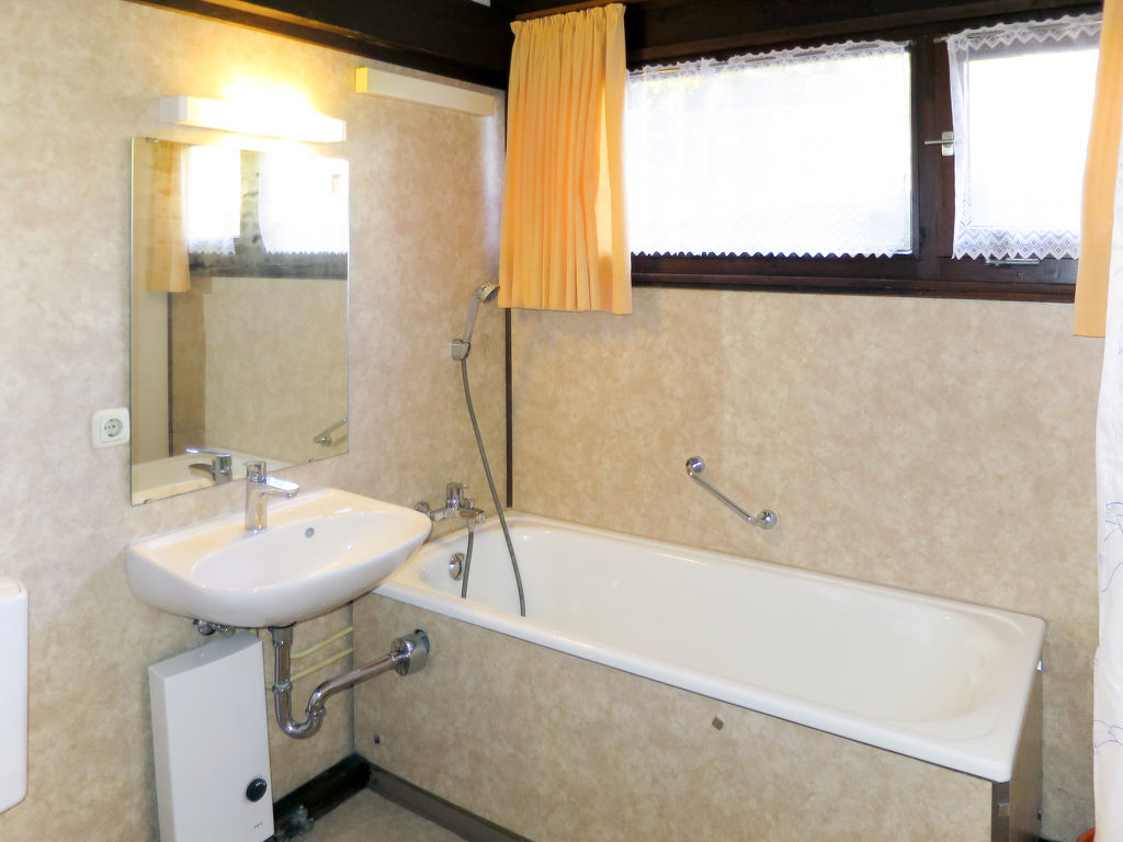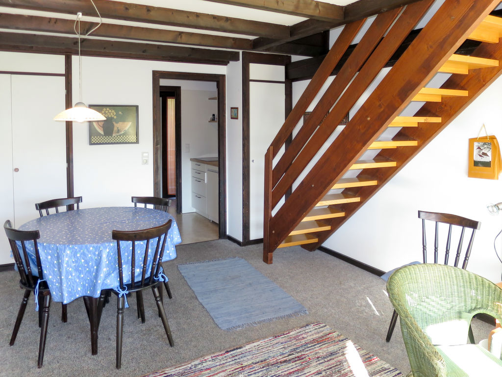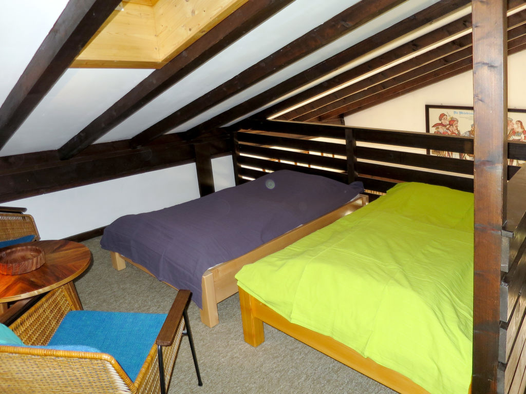 "Salzburg", 2-Zimmer-Wohnung 68 m2 auf 2 Stockwerken. Zweckmässig und mit viel Holz eingerichtet: Wohn-/Schlafzimmer mit 1 Doppeldiwanbett, Esstisch und Sat-TV. Ausgang zum Balkon. Kochnische (2 Kochplatten, elektrische Kaffeemaschine). Bad/WC oder Dusche/WC. Heizung. Obergeschoss: offene Galerie. 1 Zimmer mit 2 Betten. Balkon. Balkonmöbel. Bitte beachten: Nichtraucher-Unterkunft. 1 Haustier/Hund erlaubt. Rauchmelder. Falls keine Doppelbettcouch im Wohnraum steht, befinden sich 2 Einzelbetten auf der Galerie.