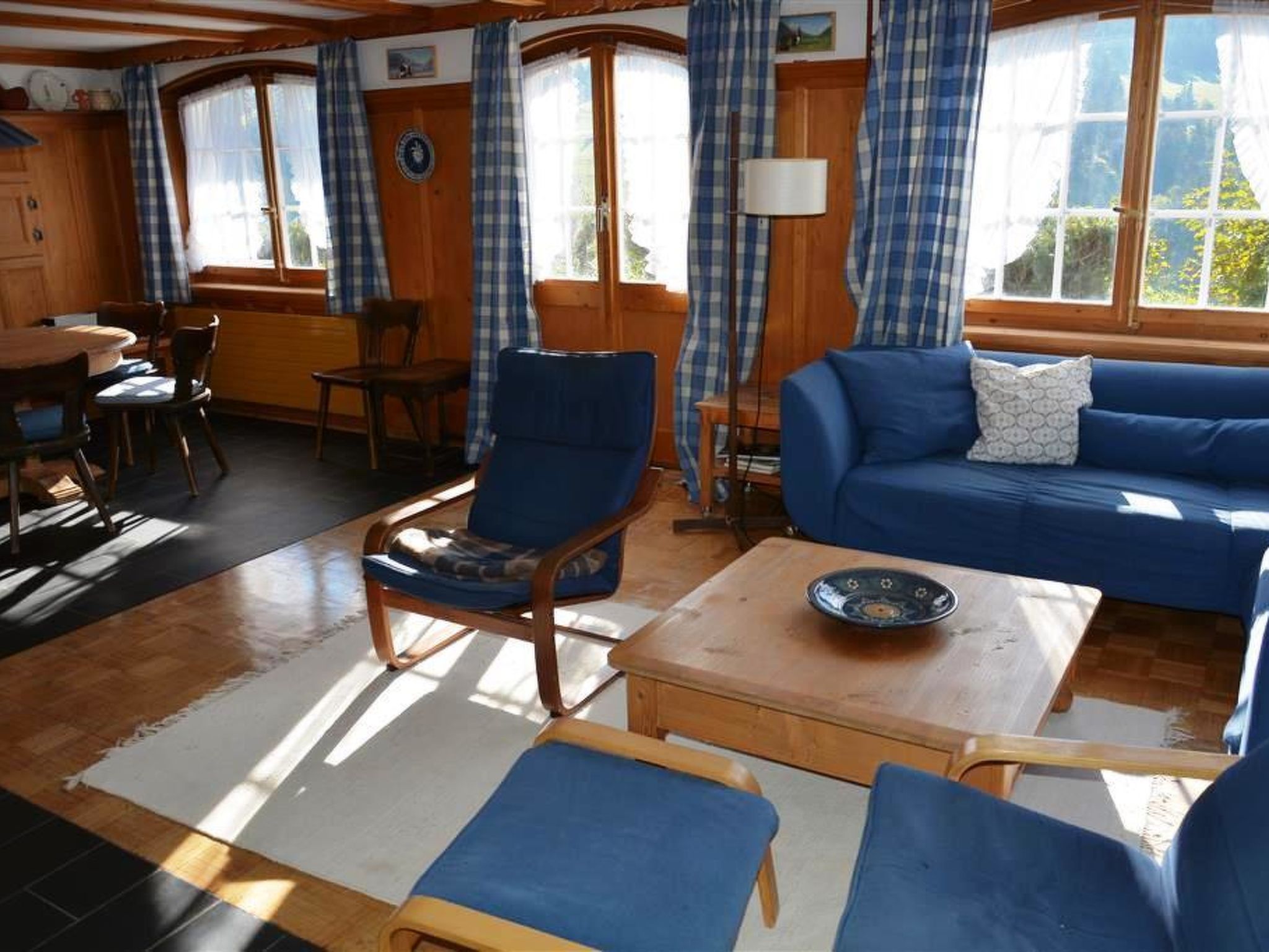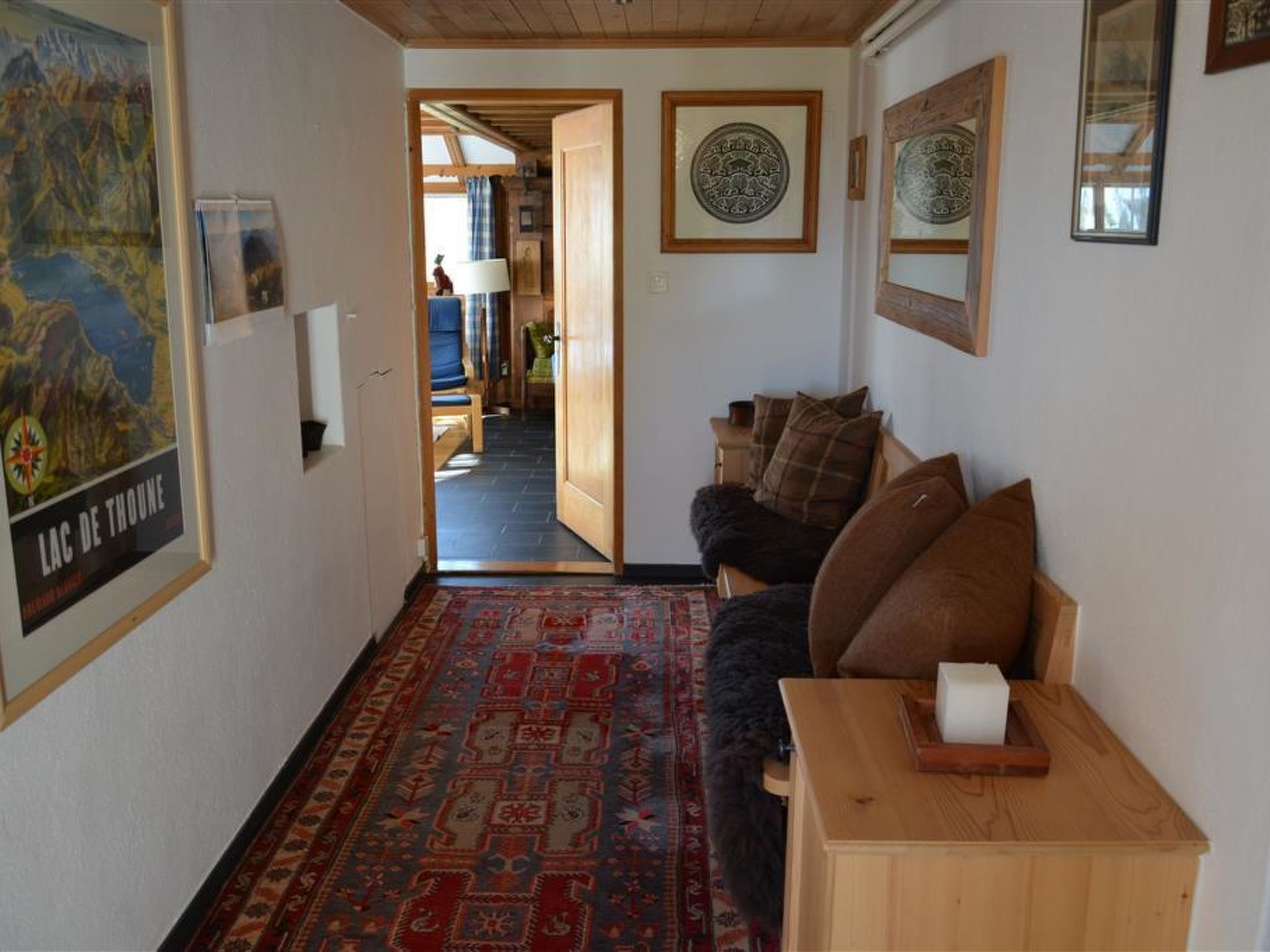 7-Zimmerchalet mit Küche/Esszimmer mit Fondue-, Raclette-Set und Filter-Kaffeemaschine; Wohnzimmer mit Radio, TV, Telefon, WiFi, 2 Badezimmer, WC separat; 5 Schlafzimmer: 1 Grandlit, 1 Doppelzimmer, 2 Einzelzimmer, 1 niedriges 3-Bettzimmer im Dachstock, geeignet für Kinder. Kinderbett (60x120cm) exkl. Bettwäsche vorhanden. Das Cheminée im Wohnzimmer darf von Gästen nicht benutzt werden.