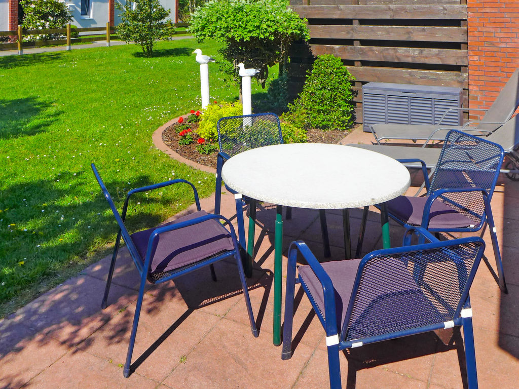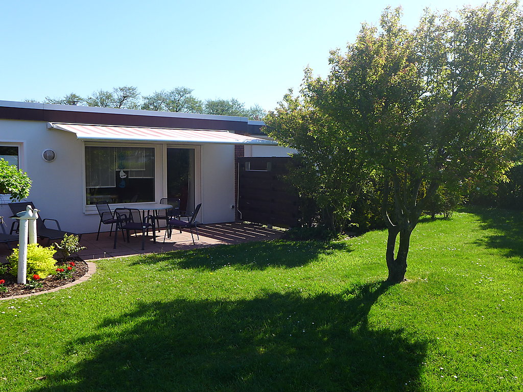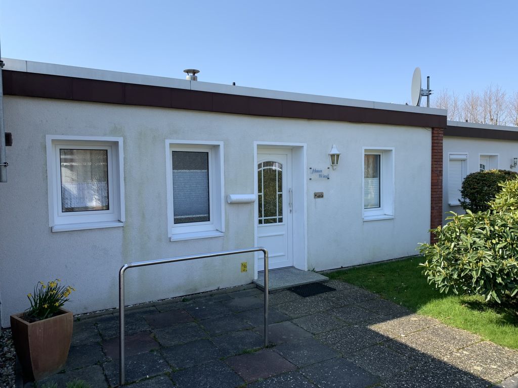 Reihenhaus. Im Ort, zentrale Lage, 450 m vom Meer, 450 m vom Strand, in einer Sackgasse. Zur Mitbenutzung: Garten mit Rasen. Im Hause: Einstellraum für Fahrräder, Zentralheizung. Parkplatz beim Haus. Supermarkt 2.9 km, Restaurant 130 m, Bäckerei, Café 100 m, Bushaltestelle 250 m, Bahnstation "Norddeich" 1.5 km, Fähre 1.5 km, Sandstrand 500 m, Freibad 14 km, Hallenbad 450 m. Golfplatz (9 Loch) 8 km, Surfschule 550 m, Tennis 2 km, Minigolf 450 m.