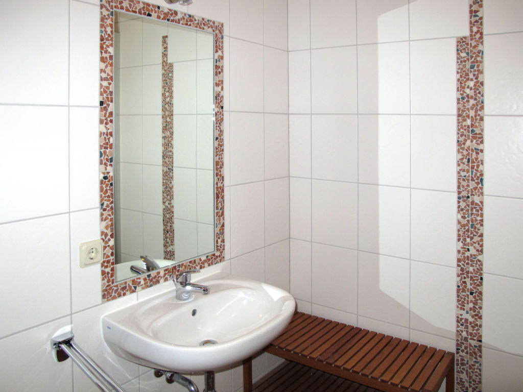 "Karen", 2-Zimmer-Wohnung 50 m2 im 1. Stock. Hell, geschmackvoll eingerichtet: Wohn-/Schlafzimmer mit 1 Doppeldiwanbett, Esstisch und Sat-TV (Flachbildschirm), Radio und CD. Ausgang zum Balkon. 1 Doppelzimmer. Offene Küche (Backofen, Geschirrspüler, 4 Glaskeramikherd Platten, Toaster, Wasserkocher, Mikrowelle, elektrische Kaffeemaschine). Dusche/WC. G-Heizung. Balkon. Balkonmöbel. Zur Verfügung: Kinderhochstuhl, Babybett. Internet (Wireless LAN, gratis). Parkplatz (1 Auto). Bitte beachten: Nichtraucher-Unterkunft. Rauchmelder, Feuerlöscher.