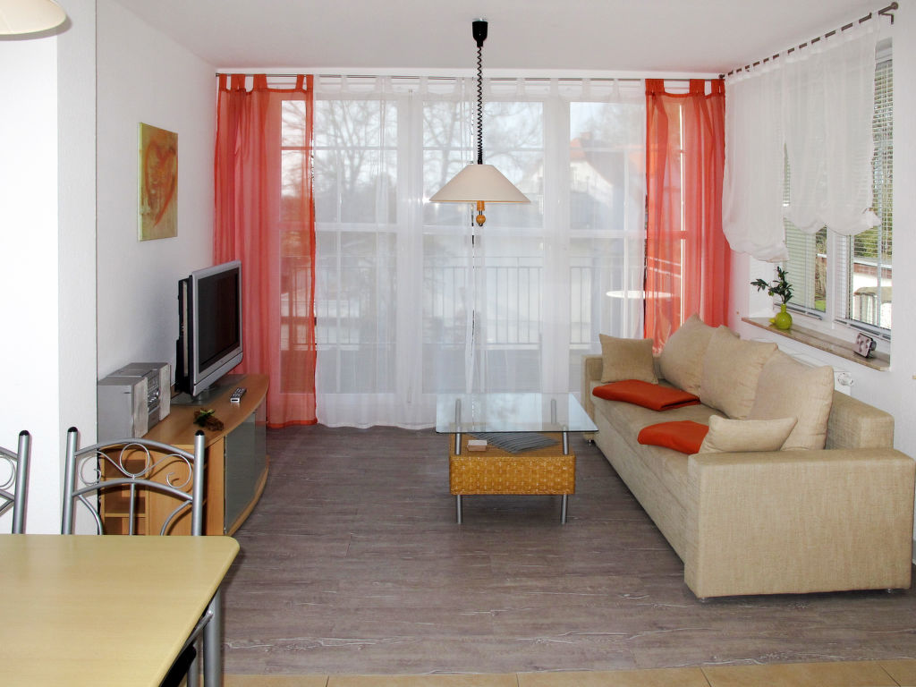 Appartementhaus "Das gelbe Haus", auf 3 Stockwerken. 800 m vom Zentrum von Zinnowitz, am Ortsrand, 10 km vom Zentrum von Wolgast, 40 km vom Zentrum von Greifswald, 600 m vom Meer. Zur Mitbenutzung: gepflegter Garten 1'000 m2 (nicht eingezäunt) mit Pflanzen. Supermarkt 800 m, Sandstrand 600 m. Hinweis: Das Hallenbad im nahegelegenen Parkhotel kann mitbenutzt werden (4 €/Stunde).