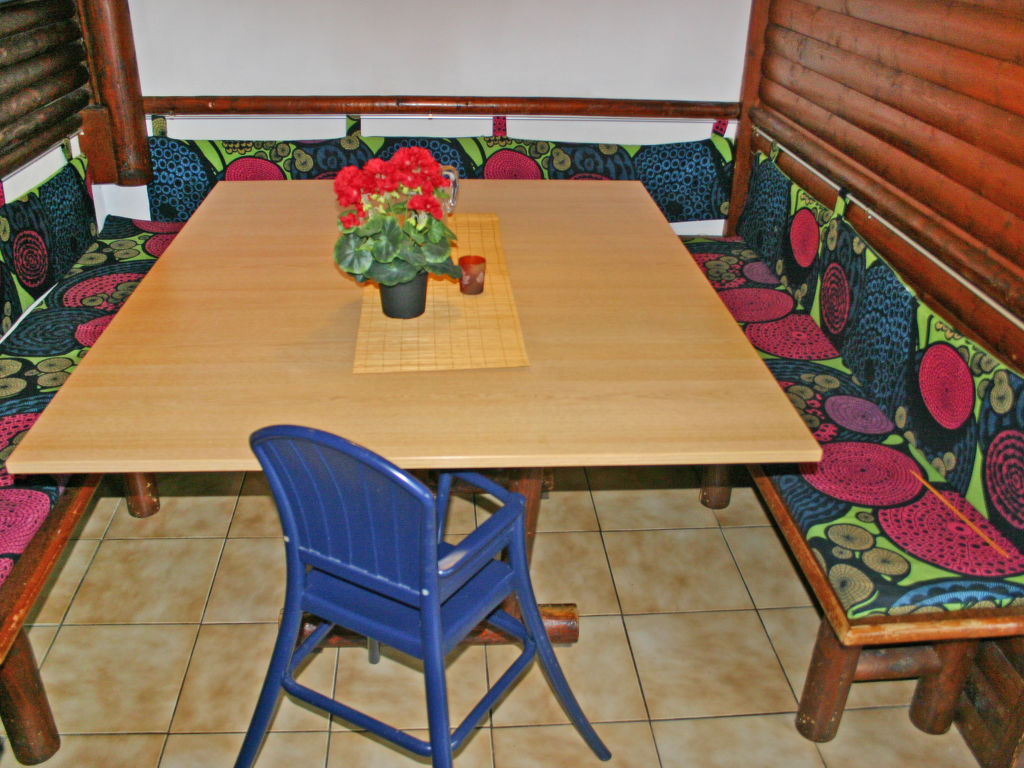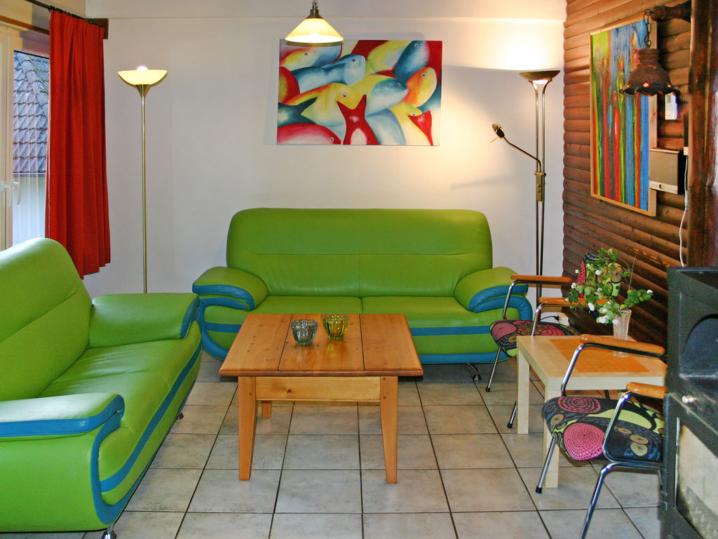 "Am Sternberg 84", 4-Zimmer-Haus 75 m2 auf 2 Stockwerken, im Erdgeschoss. Modern und mit viel Holz eingerichtet: Wohn-/Esszimmer 25 m2 mit Kabel-TV (Flachbildschirm), Stereoanlage und Holzofen. Ausgang zur Terrasse, zum Gartensitzplatz. 1 Zimmer 12 m2 mit 1 Doppelbett (180 cm, Länge 200 cm), Waschbecken und sep. WC. Offene Küche 8 m2 (4 Kochplatten, Backofen, Geschirrspüler, Mikrowelle, elektrische Kaffeemaschine). Dusche/WC. Obergeschoss: (Wendeltreppe) 1 abgeschrägtes Zimmer 12 m2 mit 1 Doppelbett (180 cm, Länge 200 cm), Waschbecken. Ausgang zum Balkon. 1 abgeschrägtes Zimmer 11 m2 mit 2 Betten (90 cm, Länge 200 cm), Waschbecken. Ausgang zum Balkon. E-Heizung. Kleiner Balkon 5 m2, Südlage, grosse Terrasse 20 m2 teilweise überdacht, Gartensitzplatz, Rasen 100 m2. Terrassenmöbel, Balkonmöbel, Gartengrill (mobil). Zur Verfügung: Kinderhochstuhl, Holz (extra). Internet (Wireless LAN, gratis). Bitte beachten: Nichtraucher-Haus. Maximal 2 Haustiere/Hunde erlaubt. Rauchmelder, Feuerlöscher. Im Erdgeschoss sind die Räume über Treppenstufen (Zwischenstock) verbunden.