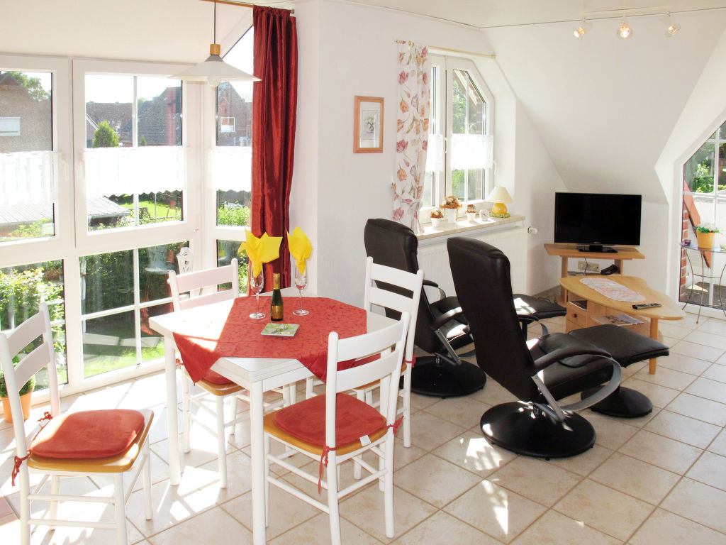 Mehrfamilienhaus. Am Ortsrand, 1.4 km vom Zentrum von Norden, 3.5 km vom Meer, 3.5 km vom Strand. Im Hause: Zentralheizung. Parkplatz beim Haus. Einkaufsgeschäft, Lebensmittelgeschäft, Supermarkt, Bäckerei 700 m, Fahrradverleih, Bushaltestelle 350 m, Bahnstation 3.2 km, Fähre 3 km, Sandstrand 3.5 km, Freibad 11 km, Hallenbad 2.4 km. Golfplatz (9 Loch) 6 km, Surfschule 3.5 km, Minigolf 2.4 km.
