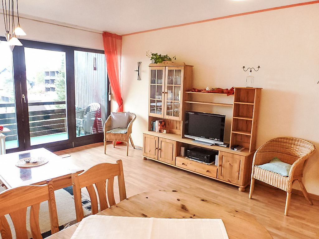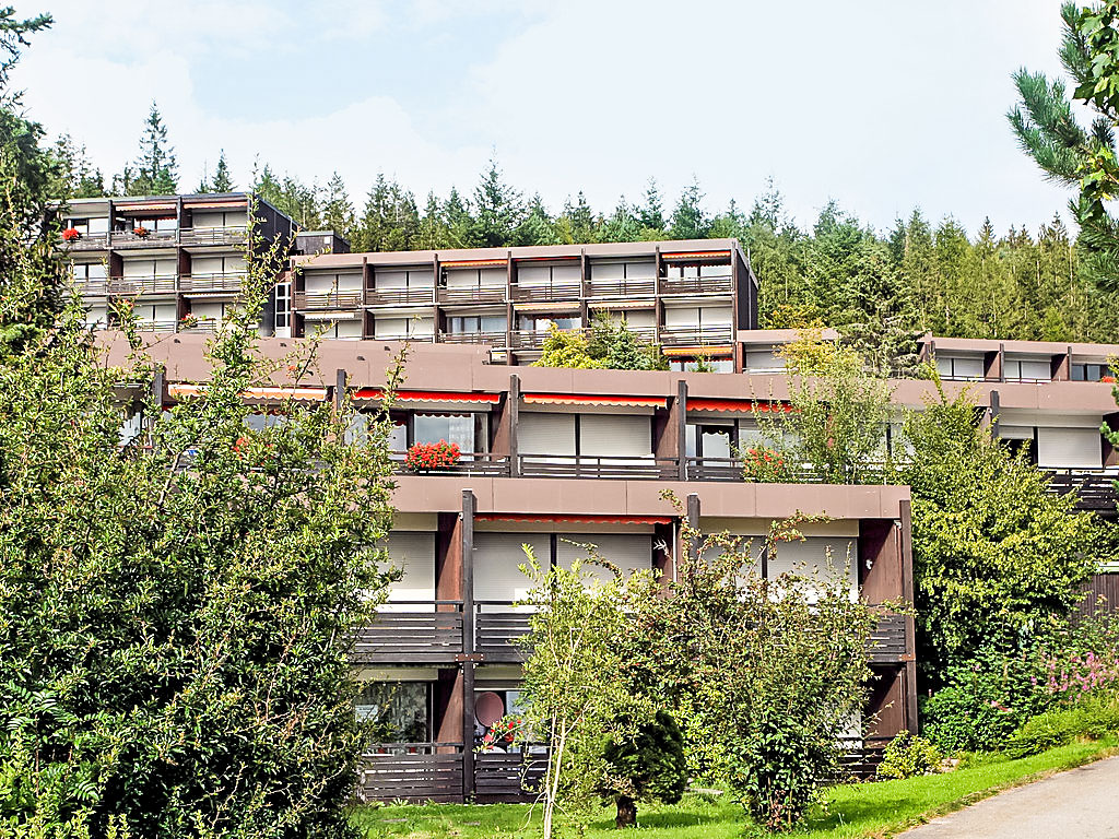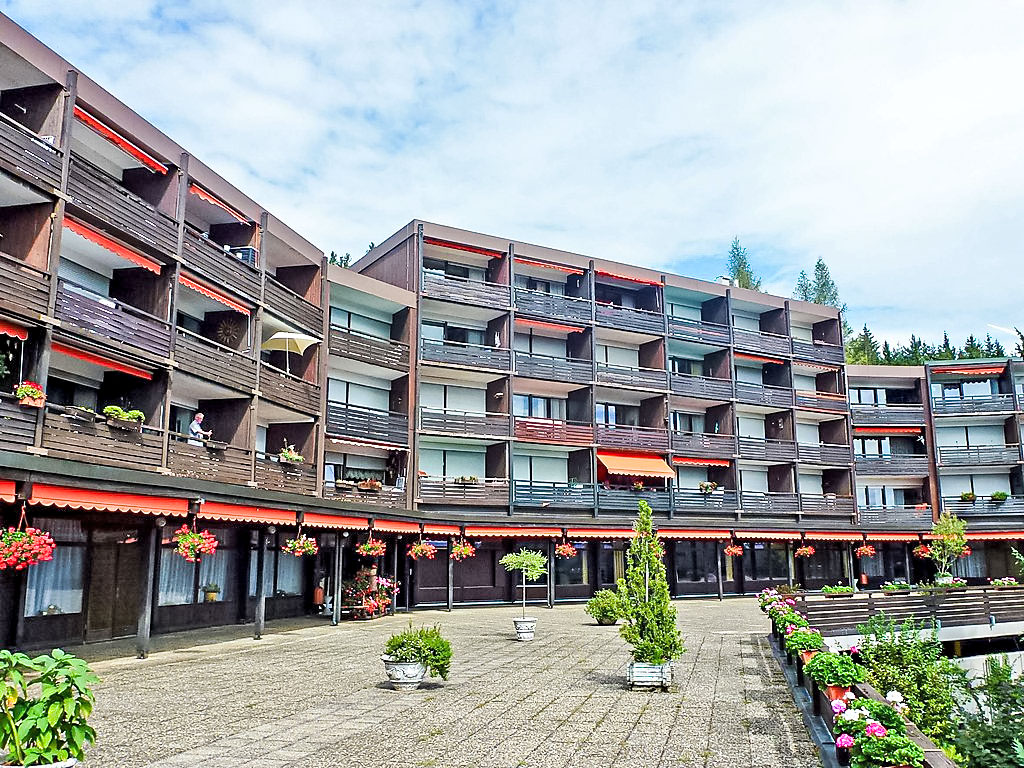 Ferienanlage "Terrassenpark". Am Ortsrand, 2 km vom Zentrum von Schonach, ruhige, sonnige Lage am Hang, direkt am Waldrand, Richtung Süden. Zur Mitbenutzung: Hallenbad (18 x 6 m). Tennis (extra), Tischtennis. In der Anlage: Sauna (extra). Fitnessraum, Solarium (extra). Zentralheizung. Parkplatz beim Haus, Gemeinschaftsgarage (extra). Lebensmittelgeschäft 2 km, Supermarkt 2 km, Restaurant 2 km, Bushaltestelle 500 m. Reitstall, Skilift, Skischule, Kinderskischule 500 m, Langlaufloipe 50 m. Naturbad 500 m. Die Ferienanlage besteht aus mehreren Häusern, die gesamte Infrastruktur befindet sich im Hauptgebäude.