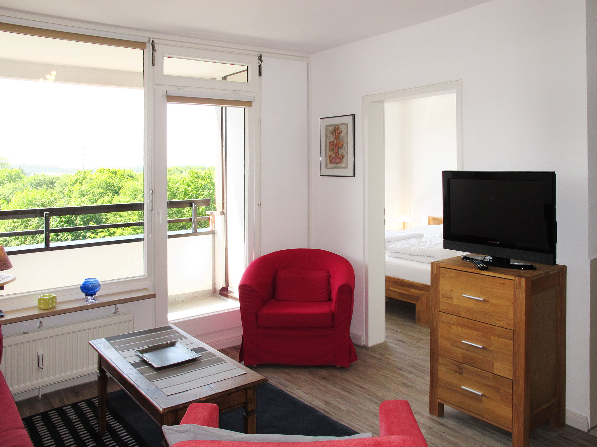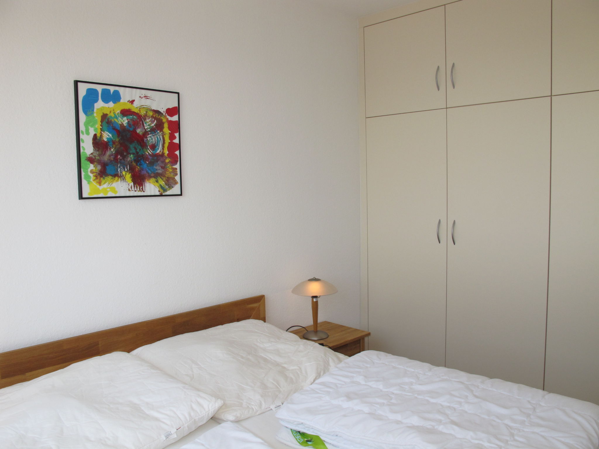 "Ostsee-Residenz (DMP154)", 2-Zimmer-Wohnung 45 m2 im 6. Stock. Gemütlich eingerichtet: Wohn-/Schlafzimmer mit 1 Doppeldiwanbett (160 cm, Länge 200 cm), Esstisch, Kabel-TV, Radio und CD. Ausgang zum Balkon. 1 Zimmer mit 1 Doppelbett. Offene Küche (Backofen, Geschirrspüler, 4 Glaskeramikherd Platten, Toaster, Wasserkocher, elektrische Kaffeemaschine). Dusche/WC. Balkonmöbel, Abstellkammer. Schöne Sicht auf die Landschaft. Zur Verfügung: Waschmaschine, Kinderhochstuhl, Babybett. Internet (Wireless LAN, gratis). Bitte beachten: Nichtraucher-Unterkunft. Maximal 1 Haustier/Hund erlaubt. Rauchmelder, Feuerlöscher.