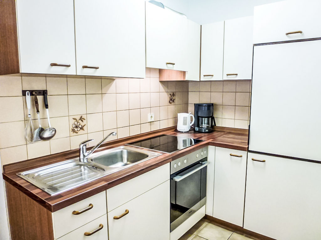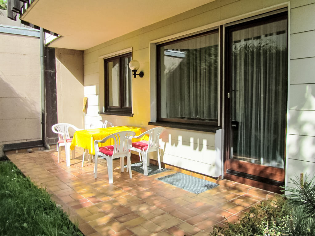 2-Zimmer-Wohnung 50 m2, unteres Geschoss. Wohn-/Esszimmer mit 1 Diwanbett und Kabel-TV (Flachbildschirm), Radio und CD. 1 Doppelzimmer. Kochnische (Backofen, 4 Glaskeramikherd Platten, elektrische Kaffeemaschine). Bad/WC. Terrasse überdacht. Terrassenmöbel, Abstellkammer. Zur Verfügung: Telefon, Haartrockner. Internet (Wireless LAN, gratis). Bitte beachten: Nichtraucher-Unterkunft.
