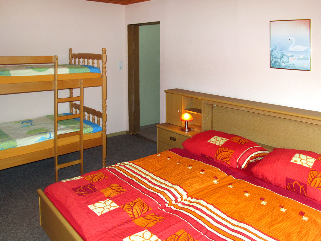 "Kaiser", 2-Zimmer-Doppelhaushälfte 54 m2 auf 2 Stockwerken. Objekt geeignet für 3 Erwachsene + 1 Kind. Zweckmässig eingerichtet: Eingang. Dusche/WC. Obergeschoss: (steile Treppe) Wohnzimmer mit Sat-TV, Radio und CD. 1 Zimmer mit 1 x 2 Etagenbetten, 1 Doppelbett. Offene Küche (2 Kochplatten, Toaster, Mikrowelle, elektrische Kaffeemaschine) mit Essecke. E-Heizung. Teppichboden. Terrasse 12 m2, überdacht. Terrassenmöbel, Gartengrill. Zur Verfügung: Kinderhochstuhl, Babybett. Internet (Wireless LAN, gratis). Bitte beachten: Nichtraucher-Haus. Rauchmelder.