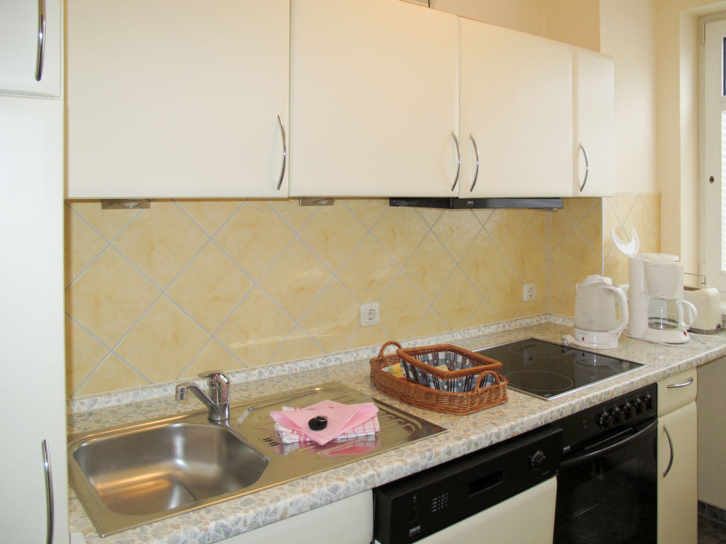 "Luise von Preußen", 2-Zimmer-Wohnung 60 m2 im 2. Stock. Hell, komfortabel eingerichtet: Wohn-/Schlafzimmer mit 1 Doppeldiwanbett (160 cm, Länge 200 cm), Esstisch, Sat-TV und Stereoanlage. Ausgang zur Terrasse. 1 Zimmer mit 1 Doppelbett. Ausgang zur Terrasse. Küche (Backofen, Geschirrspüler, 4 Glaskeramikherd Platten, Toaster, Wasserkocher, elektrische Kaffeemaschine). Bad/WC. Grosse Terrasse 18 m2. Terrassenmöbel, Abstellkammer. Zur Verfügung: Kinderhochstuhl, Babybett. Parkplatz (1 Auto) beim Haus. Bitte beachten: Nichtraucher-Unterkunft. Rauchmelder.