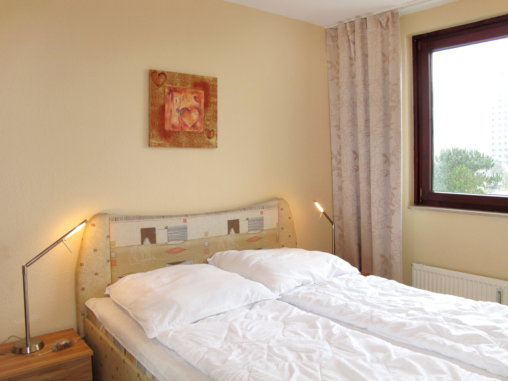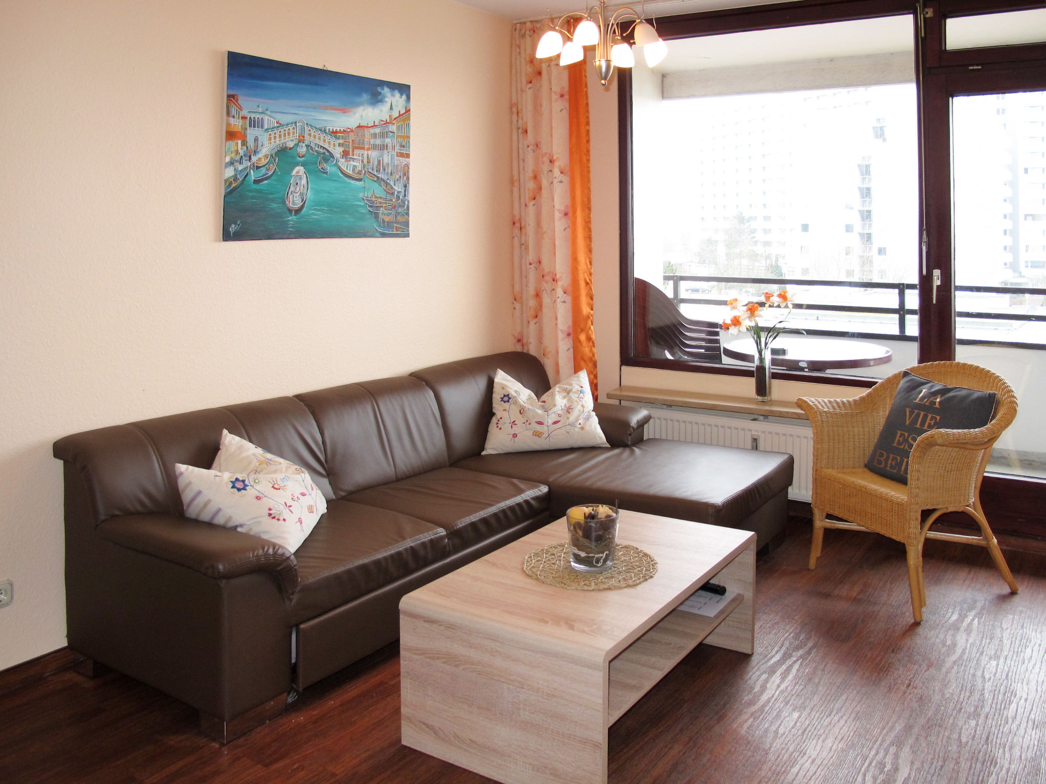 "Ostsee-Residenz (DMP161)", 3-Zimmer-Wohnung 60 m2 im 3. Stock. Gemütlich eingerichtet: Wohn-/Schlafzimmer mit 1 Doppeldiwanbett, Esstisch, Sat-TV und Stereoanlage. Ausgang zum Balkon. 1 Zimmer mit 1 Doppelbett (140 cm, Länge 200 cm). 1 Zimmer mit 1 Doppelbett (160 cm, Länge 200 cm). Offene Küche (4 Kochplatten, Backofen, Toaster, Wasserkocher, Mikrowelle, elektrische Kaffeemaschine). Dusche/WC. Balkonmöbel. Sicht auf das Meer und den Hafen. Zur Verfügung: Waschmaschine, Kinderhochstuhl, Babybett. Bitte beachten: Maximal 1 Haustier/Hund erlaubt. Rauchmelder.