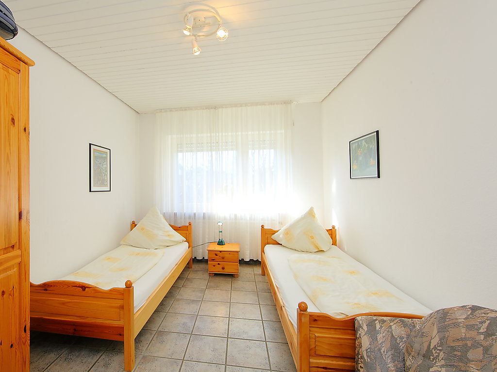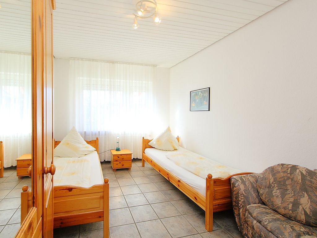 "Anker", 3-Zimmer-Wohnung 85 m2, im Erdgeschoss. Geräumig, gemütlich eingerichtet: Wohn-/Esszimmer 30 m2 mit offenem Kamin und Sat-TV (Flachbildschirm), Stereoanlage und DVD. Ausgang zur Terrasse. 1 Zimmer 12 m2 mit 1 Doppelbett (2 x 90 cm, Länge 180 cm). 1 Zimmer 13 m2 mit 2 Betten (90 cm, Länge 190 cm). Küche (4 Kochplatten, Backofen, Toaster, Wasserkocher, Mikrowelle, elektrische Kaffeemaschine). Dusche/WC, sep. WC. Terrasse 30 m2, grosser Garten. Terrassenmöbel, Gartengrill. Zur Verfügung: Kinderhochstuhl (extra), Haartrockner. Internet (Wireless LAN, gratis). Bitte beachten: Nichtraucher-Unterkunft. Maximal 1 Haustier/Hund erlaubt. Zugang zu Dusche/WC nur durch das Doppelzimmer möglich. Das separate WC befindet sich ausserhalb der Wohnung (im Hausflur).