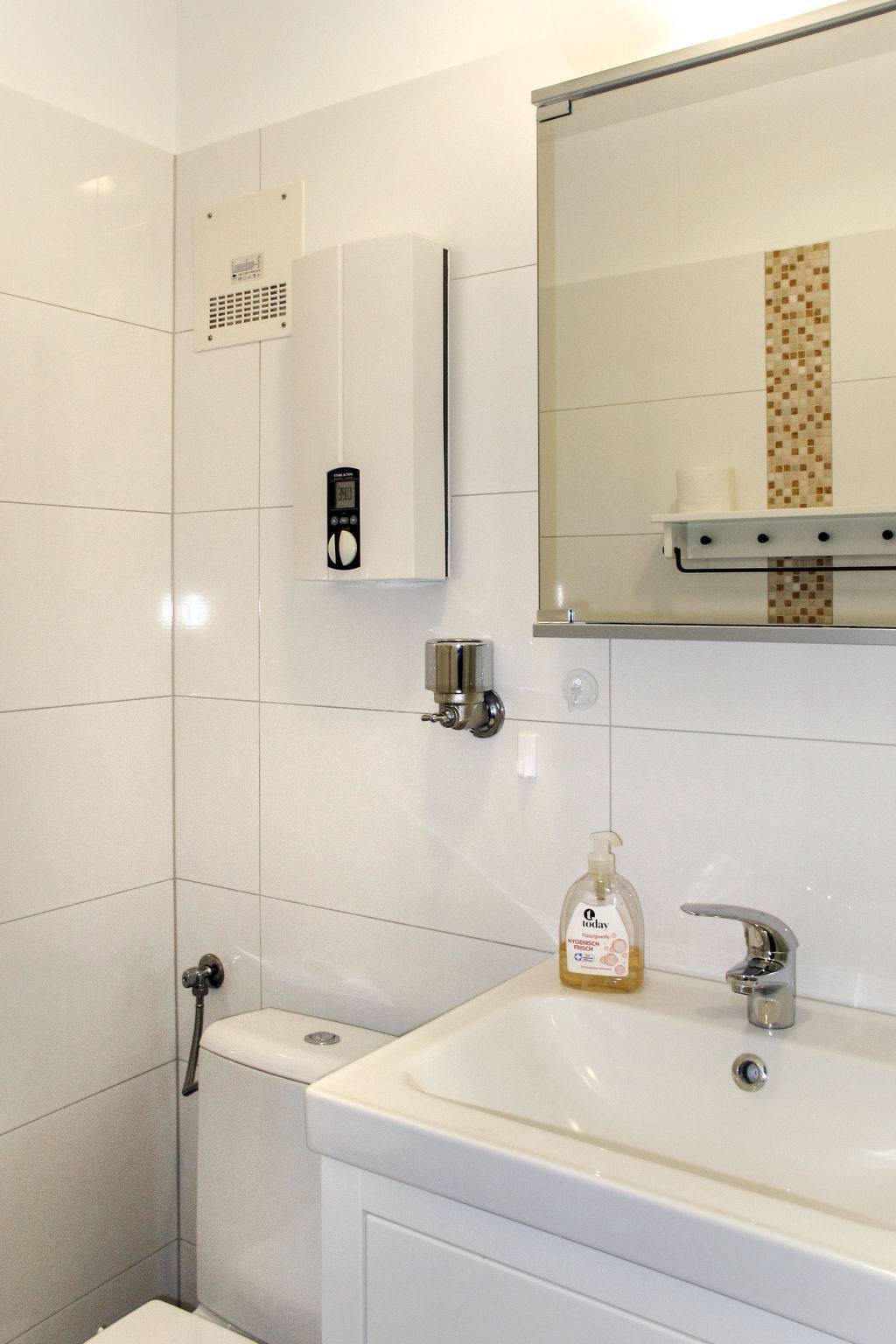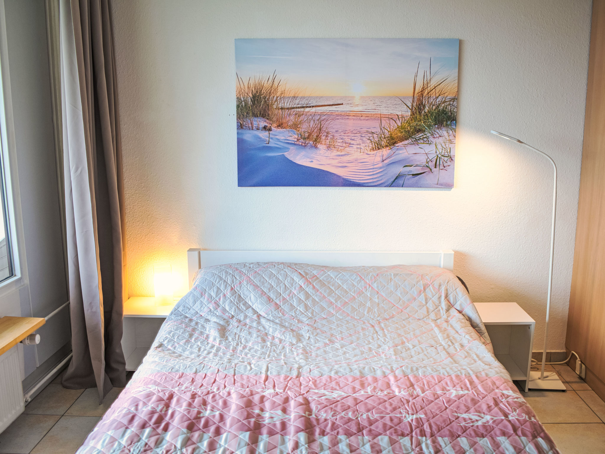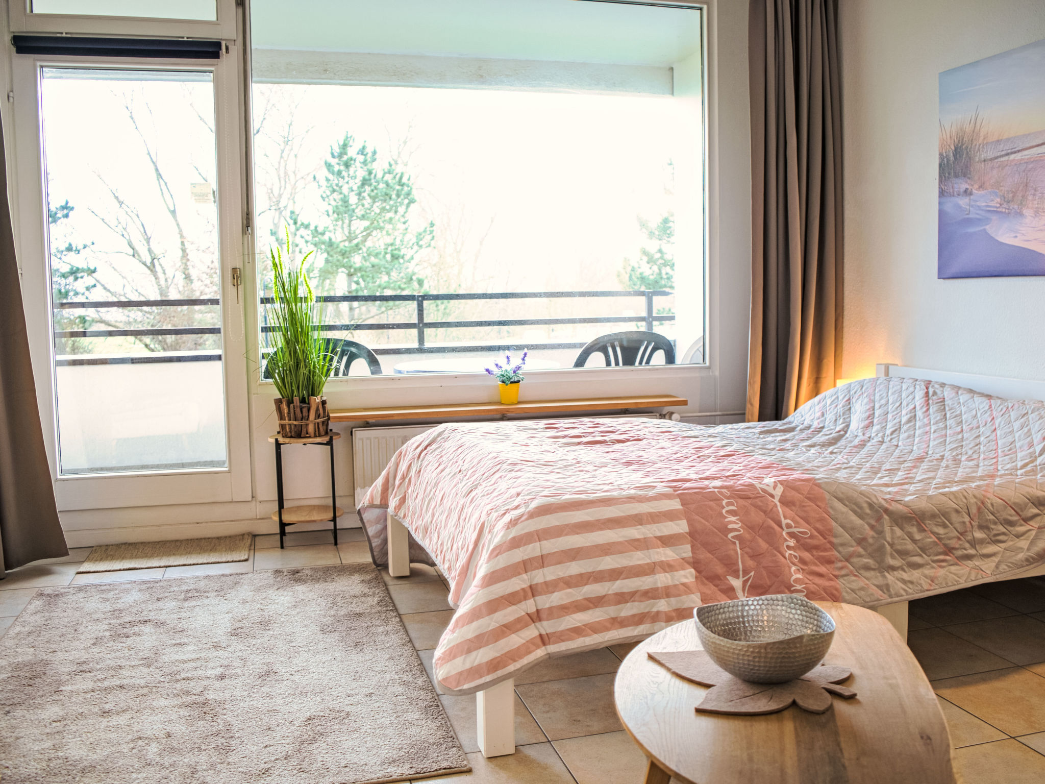 "Ostsee-Residenz (DMP170)", 1-Zimmer-Wohnung 35 m2 im 1. Stock. Gemütlich eingerichtet: Wohn-/Schlafzimmer mit 1 Diwanbett (120 cm, Länge 200 cm), 1 Doppeldiwanbett (160 cm, Länge 200 cm), Esstisch, Sat-TV, Stereoanlage und DVD. Ausgang zum Balkon. Offene Küche (Backofen, Geschirrspüler, 4 Glaskeramikherd Platten, Toaster, Wasserkocher, Mikrowelle, elektrische Kaffeemaschine). Dusche/WC. Balkonmöbel. Sicht auf das Meer. Zur Verfügung: Internet (Wireless LAN, gratis). Bitte beachten: Nichtraucher-Unterkunft. Maximal 1 Haustier/Hund erlaubt. Rauchmelder, Feuerlöscher.