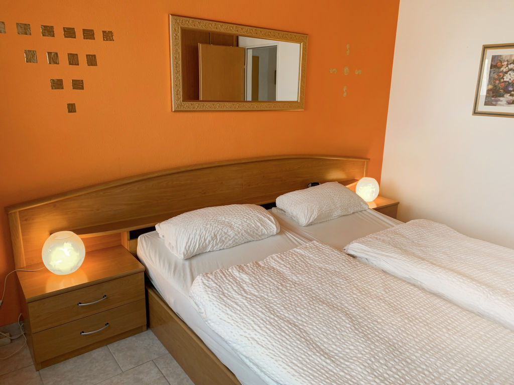 3-Zimmer-Wohnung 75 m2 im 1. Stock. Schön und gemütlich eingerichtet: Wohn-/Esszimmer mit Kabel-TV (Flachbildschirm), Radio. Ausgang zum Balkon. 2 Zimmer, jedes Zimmer mit 1 Doppelbett (2 x 90 cm, Länge 200 cm). Kleine Küche (Backofen, 4 Glaskeramikherd Platten, Toaster, Wasserkocher, Mikrowelle, elektrische Kaffeemaschine). Dusche/WC. 2 Balkone. Balkonmöbel. Zur Verfügung: Waschmaschine, Kinderhochstuhl (extra). Bitte beachten: Nichtraucher-Unterkunft.
