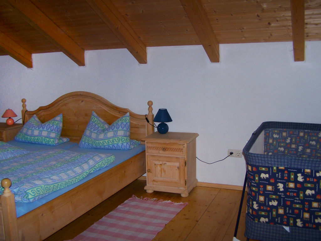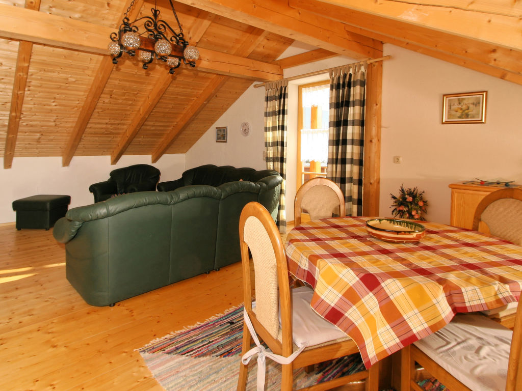 5-Zimmer-Haus 120 m2 auf 2 Stockwerken, im Erdgeschoss. Geschmackvoll eingerichtet: Esszimmer 12 m2. 1 Zimmer 18 m2 mit 1 Doppelbett (200 cm, Länge 200 cm). Küche 10 m2 (Backofen, Geschirrspüler, 4 Glaskeramikherd Platten, Toaster, Wasserkocher, Mikrowelle, elektrische Kaffeemaschine). Dusche/WC. Obergeschoss: abgeschrägtes Wohnzimmer 20 m2 mit Sat-TV (Flachbildschirm), CD, Stereoanlage und DVD. Ausgang zum Balkon. 1 abgeschrägtes Zimmer 16 m2 mit 1 Doppelbett (200 cm, Länge 200 cm). 1 abgeschrägtes Zimmer 16 m2 mit 2 Doppelbetten (200 cm, Länge 200 cm). Dusche/WC. Balkon 10 m2, Terrasse 20 m2 teilweise überdacht. Terrassenmöbel, Balkonmöbel, Gartengrill (mobil), Liegestühle (4). Schöne Sicht auf die Berge, den Garten und den Wald. Zur Verfügung: Waschmaschine (extra). Wäschetrockner (extra), Kinderhochstuhl, Haartrockner. Internet (Wireless LAN, gratis). Bitte beachten: Nichtraucher-Haus. Maximal 2 Haustiere/Hunde erlaubt. Rauchmelder. Bei Reservierung der Zusatzbetten steht eine Ausziehcouch (200 cm, Länge 200 cm) im Wohnzimmer zur Verfügung.