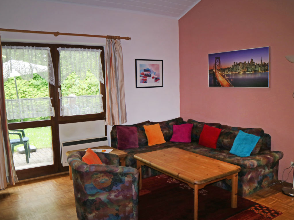 "Haus 25", 3-Zimmer-Reihenhaus 70 m2, im Erdgeschoss. Objekt geeignet für 4 Erwachsene + 2 Kinder. Gemütlich eingerichtet: Wohn-/Schlafzimmer 28 m2 mit 1 Doppeldiwanbett (200 cm, Länge 200 cm), Sat-TV (Flachbildschirm), Stereoanlage und DVD. Ausgang zur Terrasse. 1 Zimmer 16 m2 mit 1 Doppelbett (200 cm, Länge 200 cm). 1 Kinderzimmer 12 m2 mit 2 Betten (90 cm, Länge 200 cm), Sat-TV (Flachbildschirm). Küche (4 Kochplatten, Backofen, Geschirrspüler, Mikrowelle) mit Essecke. Dusche/WC, sep. WC, Doppelwaschbecken. Terrasse 10 m2, überdacht, Rasen 50 m2. Gartengrill (mobil), Liegestühle (2). Schöne Sicht auf die Berge, den Wald und das Städtchen. Zur Verfügung: Haartrockner. Internet (Wireless LAN, gratis). Blu-Ray Player. Parkplatz Nr. 25. Bitte beachten: Nichtraucher-Haus. Rauchmelder. Infrarotheizung im gesamten Ferienhaus. Badezimmer mit Fussbodenheizung.