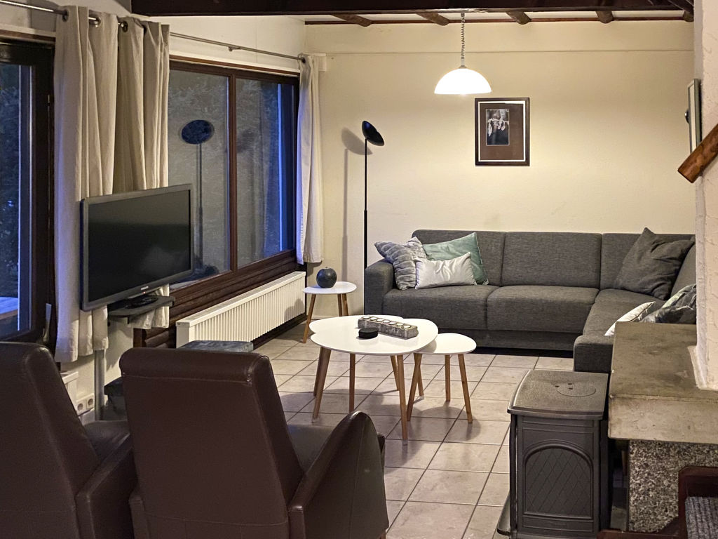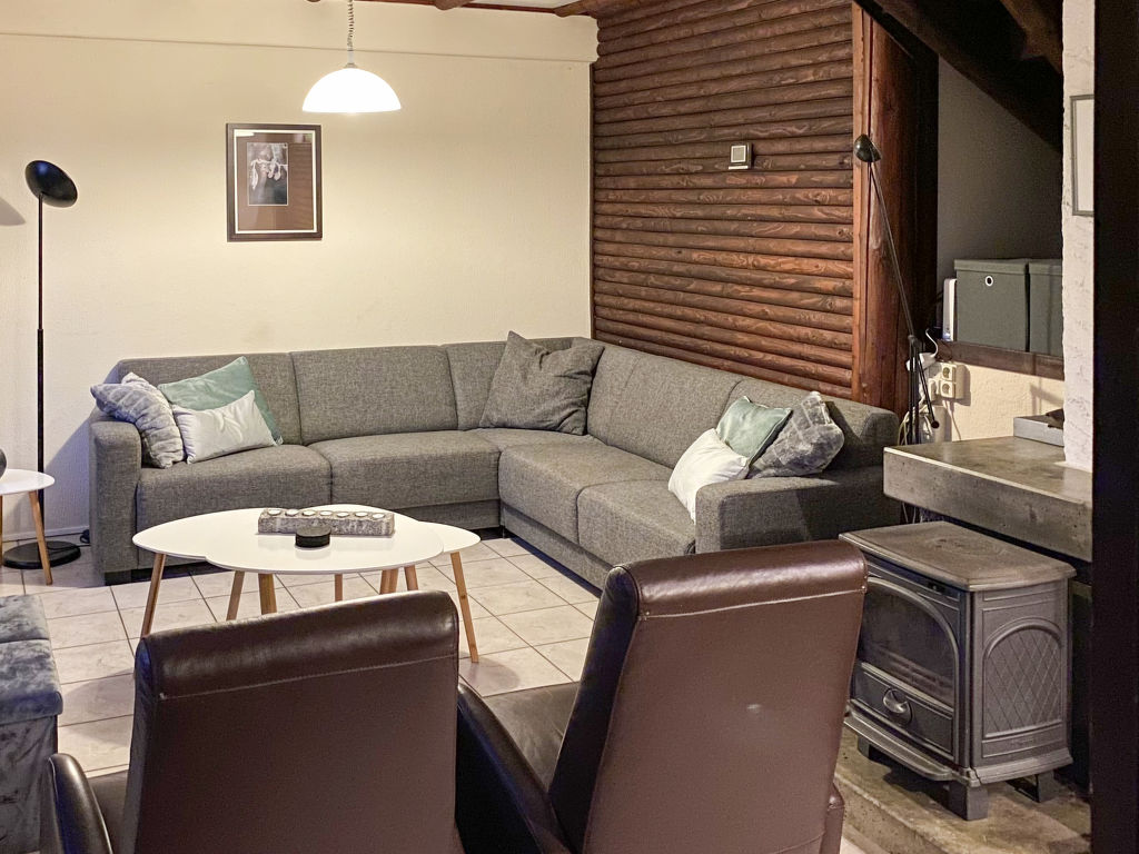 "Am Sternberg 96", 4-Zimmer-Haus 75 m2 auf 2 Stockwerken, im Erdgeschoss. Gemütlich und mit viel Holz eingerichtet: Wohn-/Esszimmer 25 m2 mit Kabel-TV (Flachbildschirm), Stereoanlage und Holzofen. Ausgang zur Terrasse, zum Gartensitzplatz. 1 Zimmer 12 m2 mit 1 Doppelbett (180 cm, Länge 200 cm), Waschbecken. Offene Küche 8 m2 (Backofen, Geschirrspüler, 4 Glaskeramikherd Platten, elektrische Kaffeemaschine). Dusche/WC. Obergeschoss: (Wendeltreppe) 1 abgeschrägtes Zimmer 12 m2 mit 1 Doppelbett (180 cm, Länge 200 cm), Waschbecken. Ausgang zum Balkon. 1 abgeschrägtes Zimmer 11 m2 mit 2 Betten (90 cm, Länge 200 cm), Waschbecken. Ausgang zum Balkon. E-Heizung. Kleiner Balkon 5 m2, Südlage, Terrasse 20 m2 teilweise überdacht, Gartensitzplatz, Rasen 100 m2. Terrassenmöbel, Balkonmöbel, Gartengrill (mobil). Zur Verfügung: Waschmaschine, Wäschetrockner, Kinderhochstuhl, Holz (extra). Internet (Wireless LAN, gratis). Bitte beachten: Nichtraucher-Haus. Maximal 2 Haustiere/Hunde erlaubt. Rauchmelder, Feuerlöscher. Im Erdgeschoss sind die Räume über Treppenstufen (Zwischenstock) verbunden.