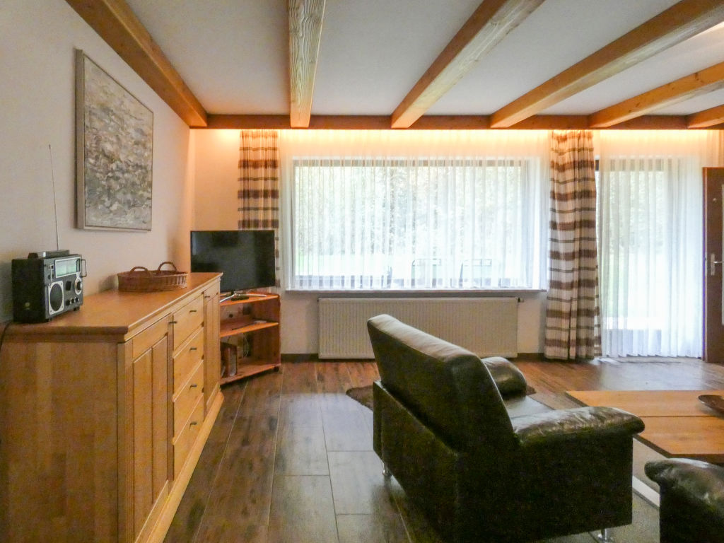 3-Zimmer-Wohnung 75 m2, im Erdgeschoss. Gemütlich eingerichtet: Wohnzimmer 35 m2 mit Sat-TV (Flachbildschirm). Ausgang zur Terrasse. 1 Zimmer 13 m2 mit 1 Doppelbett (180 cm, Länge 200 cm). 1 Zimmer 9 m2 mit 2 Betten (90 cm, Länge 190 cm). Offene Küche 9 m2 (4 Kochplatten, Backofen, Geschirrspüler, Mikrowelle, elektrische Kaffeemaschine) mit Essecke. Dusche/WC. G-Heizung. Grosse Terrasse 20 m2 teilweise überdacht, Garten 250 m2, Rasen 150 m2. Terrassenmöbel, Gartengrill (mobil), Liegestühle (2), Sitzplatz. Schöne Sicht auf die Berge. Bitte beachten: Nichtraucher-Unterkunft. Maximal 1 Haustier/Hund erlaubt. Eigener Eingang, Rauchmelder. See 150 m.