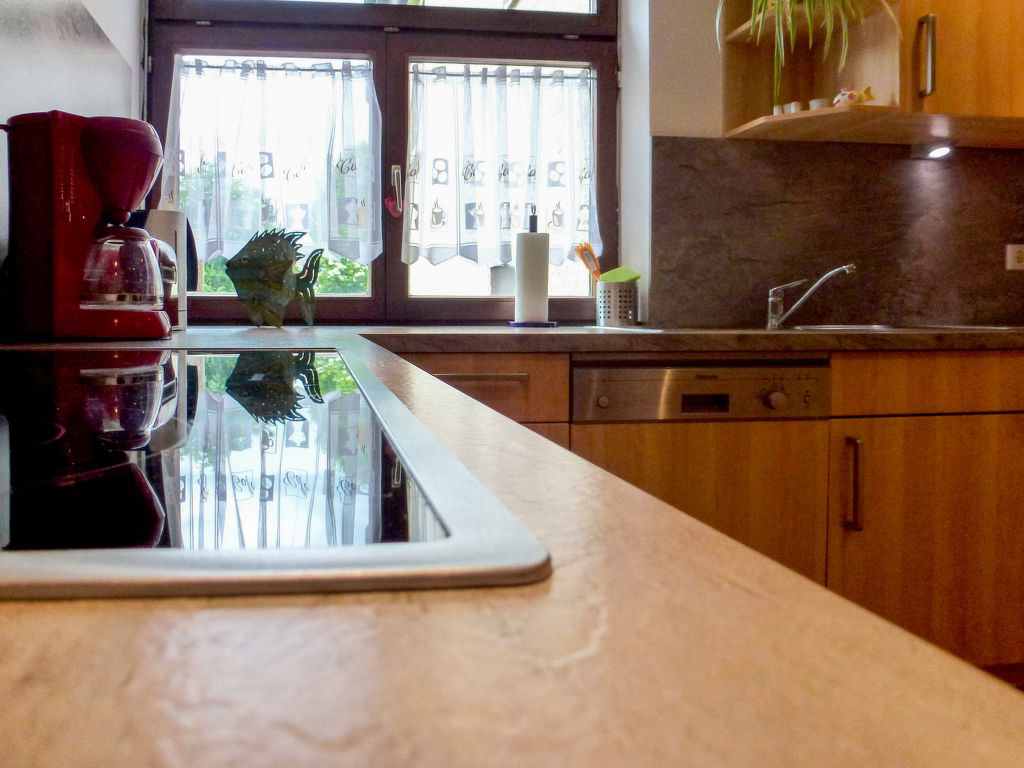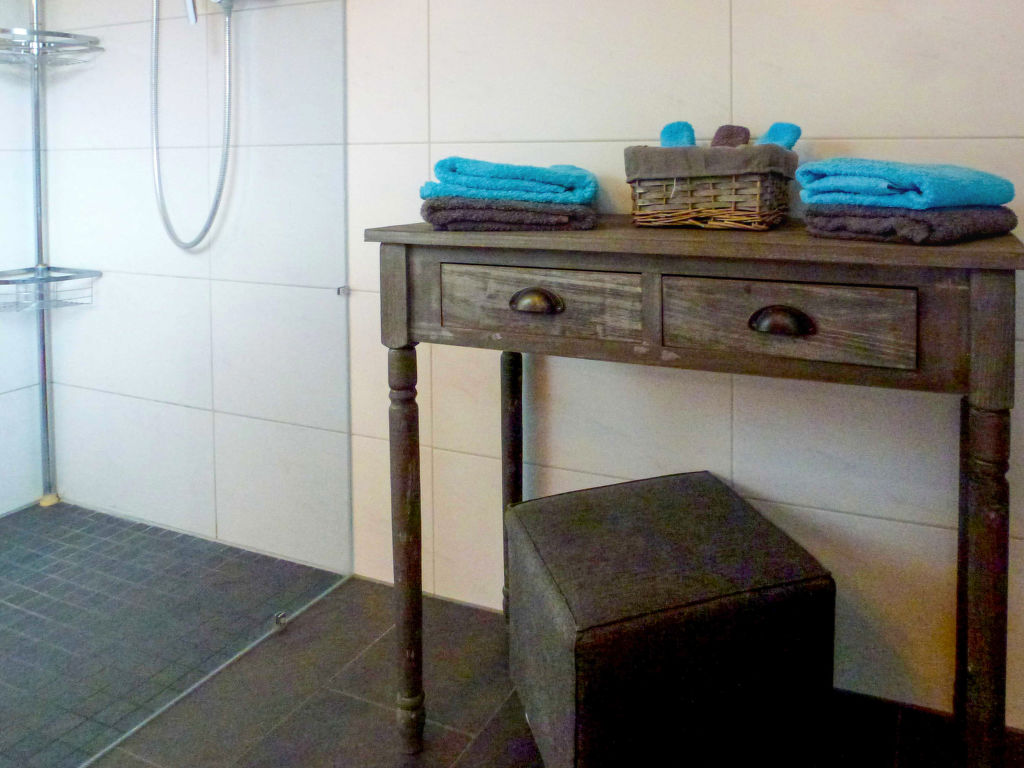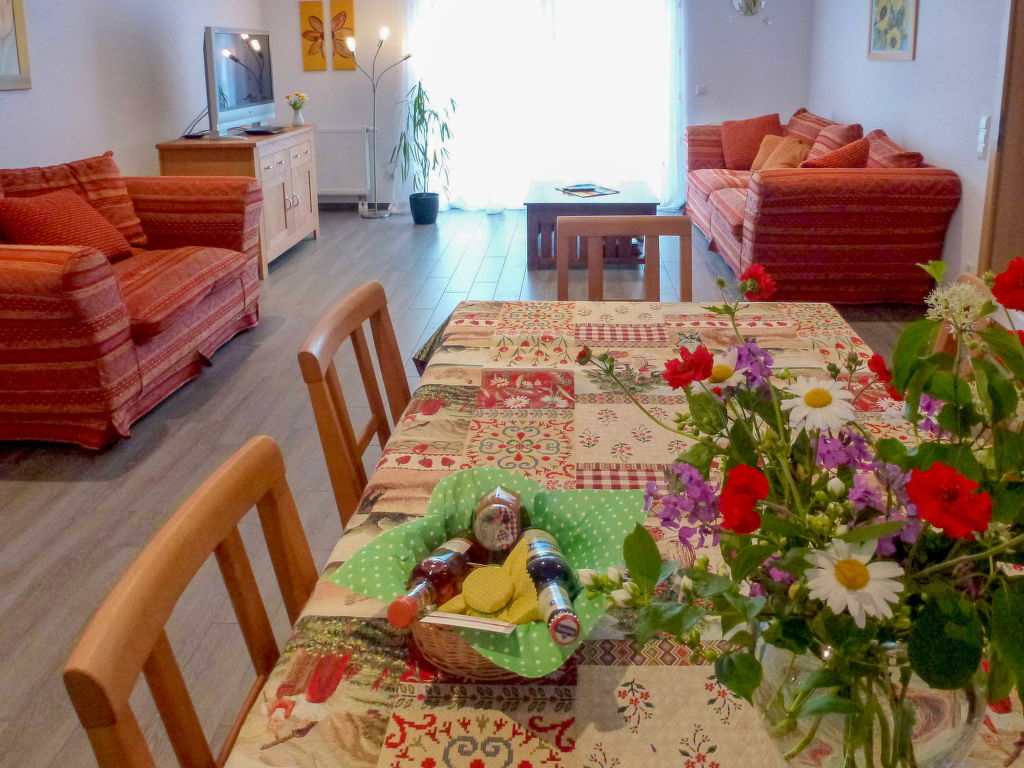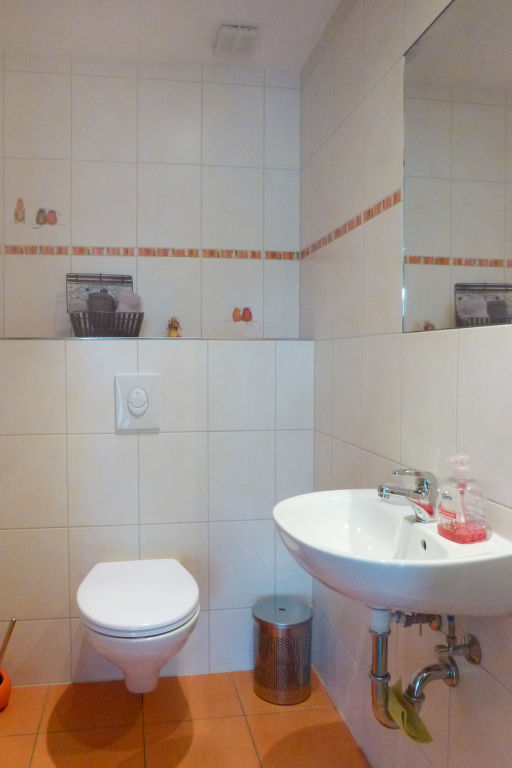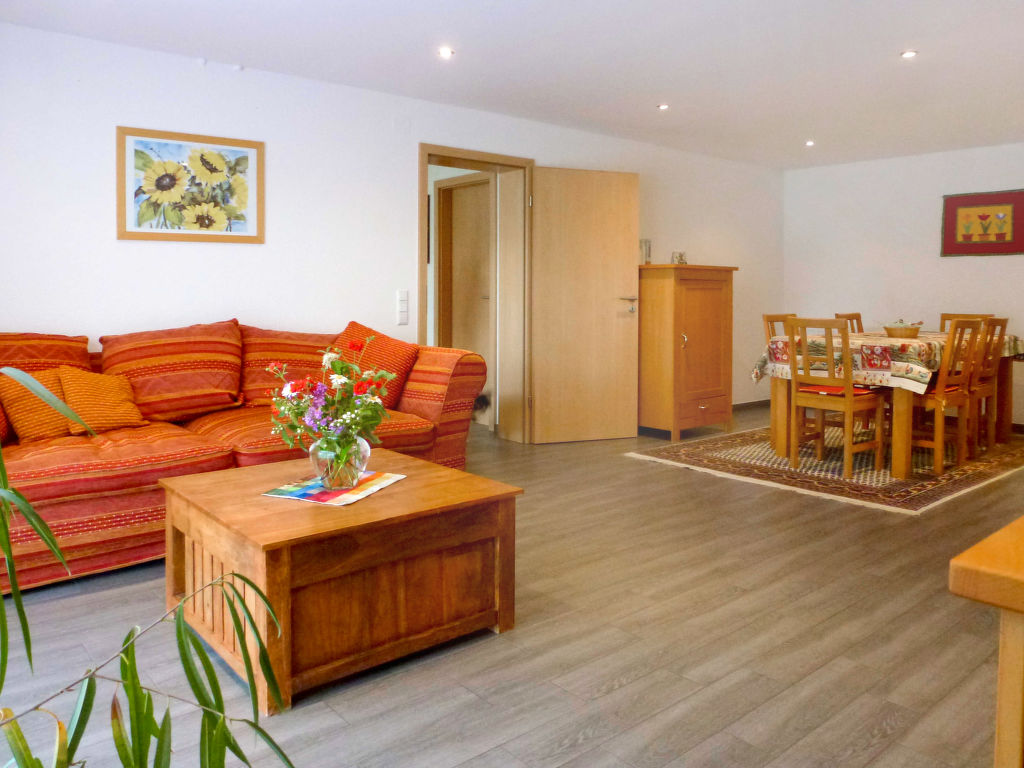 3-Zimmer-Doppelhaushälfte 130 m2 auf 2 Stockwerken, im Erdgeschoss. Objekt geeignet für 4 Erwachsene + 2 Kinder. Stilvoll und gemütlich eingerichtet: Wohn-/Esszimmer 38 m2 mit Schwedenofen und Sat-TV (Flachbildschirm). Ausgang zur Terrasse. Grosse, offene Küche 15 m2 (Backofen, Geschirrspüler, 4 Glaskeramikherd Platten, Mikrowelle, Tiefkühler, elektrische Kaffeemaschine). Sep. WC. Obergeschoss: abgeschrägtes Durchgangszimmer 22 m2 mit 1 Doppelbett (120 cm, Länge 200 cm), 2 Schlafmöglichkeiten (180 cm, Länge 200 cm). 1 abgeschrägtes Zimmer 16 m2 mit 1 Doppelbett (180 cm, Länge 200 cm). Bad/Dusche/WC. Grosse Terrasse 20 m2, kleiner Gartensitzplatz 6 m2. Terrassenmöbel, Gartengrill (mobil), Liegestühle (2), Abstellkammer. Zur Verfügung: Bügeleisen, Kinderhochstuhl, Haartrockner. Internet (Wireless LAN, gratis). Bitte beachten: Nichtraucher-Haus. Maximal 2 Haustiere/Hunde erlaubt. Rauchmelder. Wasserbett vorhanden (2 Schlafmöglichkeiten im Durchgangszimmer). Eingangsbereich (12 m2) mit Büromöbel und Zugang zum Obergeschoss. Alternativ zum Durchgangszimmer mit 4 Betten bietet sich ein Doppeldiwanbett (120 cm, Länge 200 cm) im Wohn-/Esszimmer an.