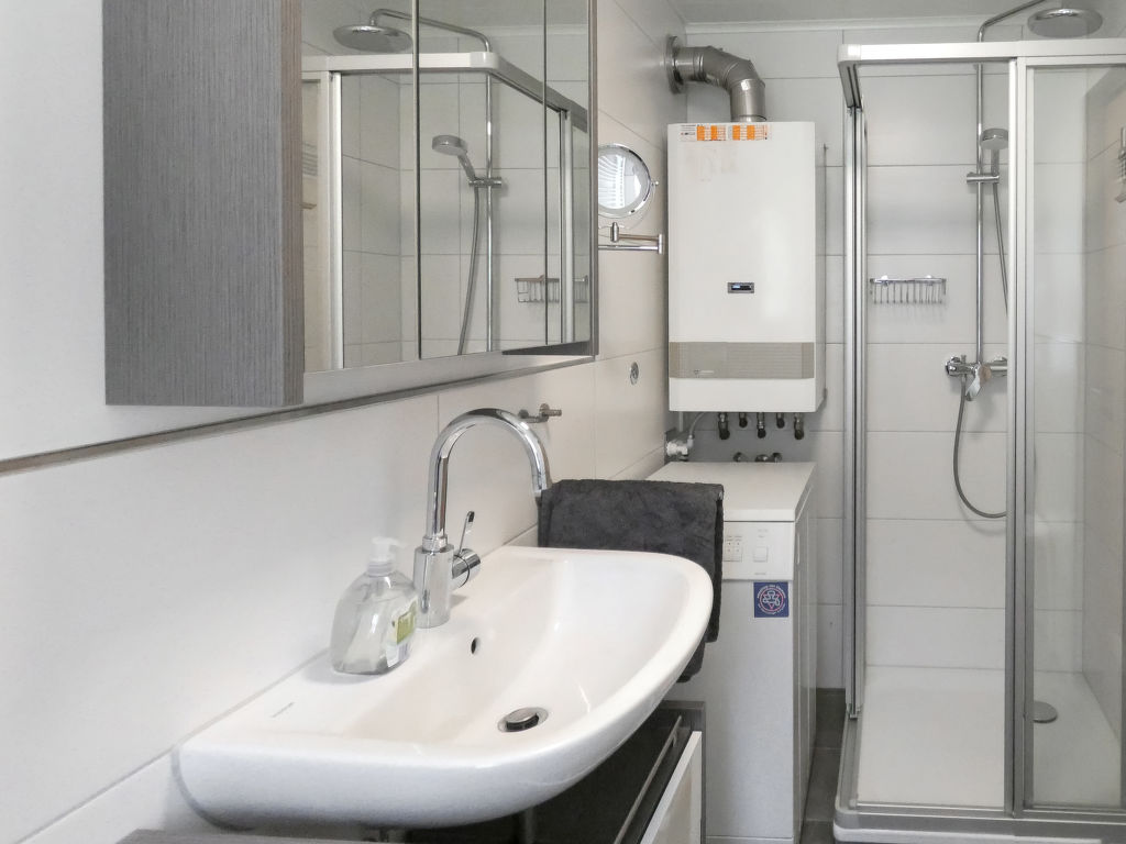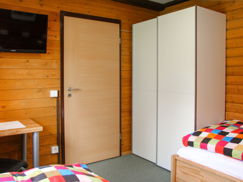 3-Zimmer-Wohnung 77 m2, im Obergeschoss. Gemütlich und mit viel Holz eingerichtet: Wohnzimmer 35 m2 mit Sat-TV (Flachbildschirm), CD, Stereoanlage und DVD. Ausgang zum Balkon. 1 Zimmer 13 m2 mit 1 Doppelbett (200 cm, Länge 200 cm). 1 Zimmer 9 m2 mit 2 Betten (100 cm, Länge 200 cm), Sat-TV (Flachbildschirm). Offene Küche 9 m2 (Backofen, Geschirrspüler, 4 Glaskeramikherd Platten, Toaster, Wasserkocher, Mikrowelle, elektrische Kaffeemaschine, Racletteofen) mit Essecke. Dusche/WC. G-Heizung. Grosser Balkon 20 m2. Balkonmöbel. Schöne Sicht auf die Berge. Zur Verfügung: Waschmaschine, Safe, Bügeleisen, Kinderhochstuhl, Haartrockner. Internet (Wireless LAN, gratis). Blu-Ray Player. Parkplatz in 40 m. Bitte beachten: Nichtraucher-Unterkunft. Eigener Eingang, Rauchmelder. Eierkocher sowie Kindergeschirr vorhanden. Balkon teilweise überdacht. See 150 m.
