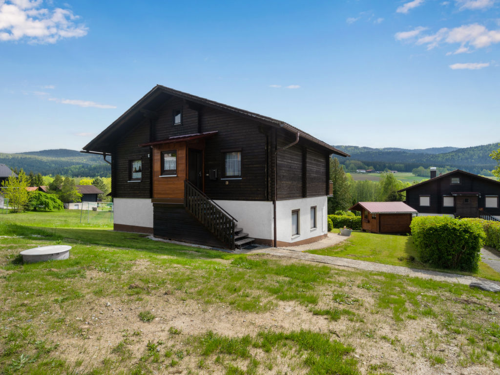 Kinderfreundliches Feriendorf "Am Hohen Bogen". Im Ortsteil Kummersdorf, ausserhalb des Ortes, 3 km vom Zentrum von Arrach, ruhige Lage am Hang, verkehrsberuhigte Zone, 300 m vom Waldrand, 100 m vom See, 9 km vom Skigebiet. Zur Mitbenutzung: Volleyball, Kinderspielplatz (Rutschbahn, Schaukel, Sandkasten). In der Anlage: Empfang, Tischtennis (extra). Einstellraum für Fahrräder, Zentralheizung. Parkplatz beim Haus. Einkaufsgeschäft 3 km, Lebensmittelgeschäft 3 km, Supermarkt 3 km, Bäckerei 3 km, Bahnstation "Hohenwarth" 1.5 km, Freibad 10 km, Thermalbad 10 km. Golfplatz (9 Loch) 6 km, Tennis 6 km, Reitstall 800 m, Sessellift 9 km, Skisportanlagen 9 km, Skipisten 9 km, Skiverleih 11 km, Skischule 9 km, Langlaufloipe 11 km. Nahe gelegene Sehenswürdigkeiten: Bayerwald-Tierpark Lohberg 15 km, Spielbank Bad Kötzting, Hochseilpark Lam, Fun-Park Neukirchen, Tiergarten Straubing, Pullman-City. Bekannte Skigebiete sind gut erreichbar: Eck 6 km, Am Hohen Bogen 9 km, Arber 29 km. Wandergebiete: Arberregion. Bitte beachten: Fahrzeug empfohlen. Angeln (mit Bewilligung) (extra). Bootfahren, Angeln 500 m. Das Feriendorf besteht aus einem Appartementhaus mit sowie zweigeschossigen Ferienhäusern mit gemeinschaftlichen Rasen- und Spielflächen. Die Entfernung der einzelnen Häuser zum Naturbadesee beträgt 50 - 400 m.