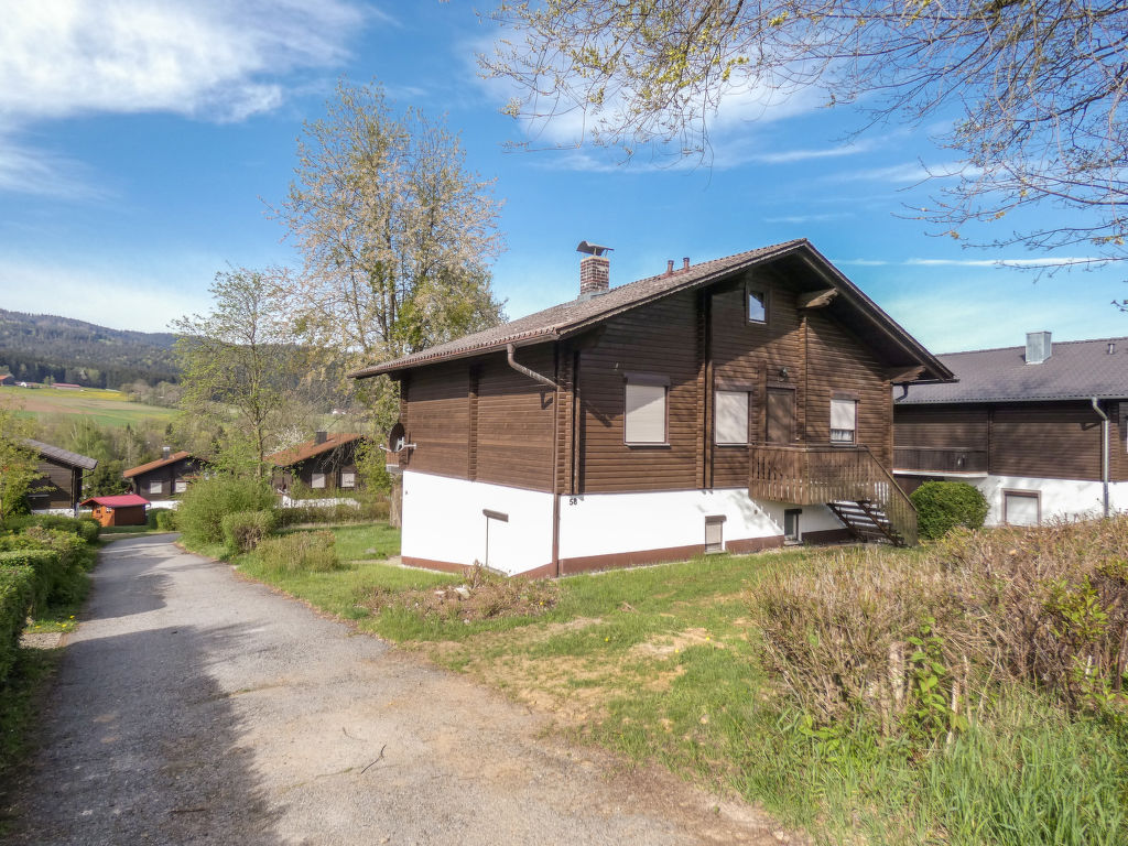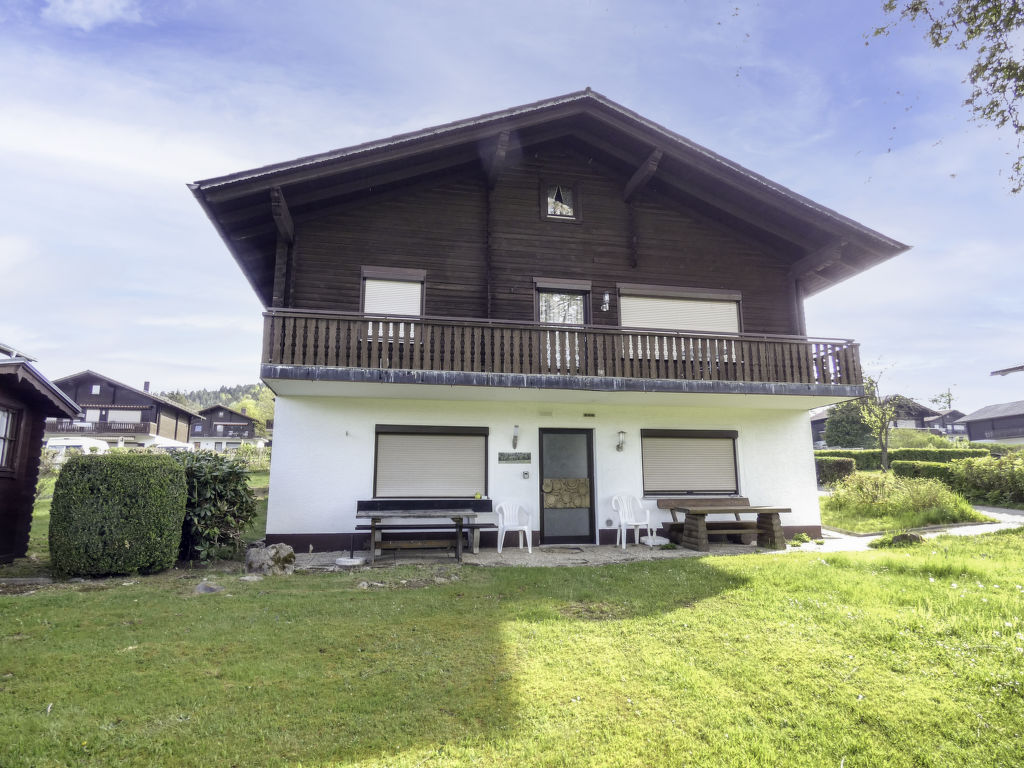Kinderfreundliches Feriendorf "Am Hohen Bogen". Im Ortsteil Kummersdorf, ausserhalb des Ortes, 3 km vom Zentrum von Arrach, ruhige Lage am Hang, verkehrsberuhigte Zone, 300 m vom Waldrand, 100 m vom See, 9 km vom Skigebiet. Zur Mitbenutzung: Volleyball, Kinderspielplatz (Rutschbahn, Schaukel, Sandkasten). In der Anlage: Empfang, Tischtennis (extra). Einstellraum für Fahrräder, Zentralheizung. Parkplatz beim Haus. Einkaufsgeschäft 3 km, Lebensmittelgeschäft 3 km, Supermarkt 3 km, Bäckerei 3 km, Bahnstation "Hohenwarth" 1.5 km, Freibad 10 km, Thermalbad 10 km. Golfplatz (9 Loch) 6 km, Tennis 6 km, Reitstall 800 m, Sessellift 9 km, Skisportanlagen 9 km, Skipisten 9 km, Skiverleih 11 km, Skischule 9 km, Langlaufloipe 11 km. Nahe gelegene Sehenswürdigkeiten: Bayerwald-Tierpark Lohberg 15 km, Spielbank Bad Kötzting, Hochseilpark Lam, Fun-Park Neukirchen, Tiergarten Straubing, Pullman-City. Bekannte Skigebiete sind gut erreichbar: Eck 6 km, Am Hohen Bogen 9 km, Arber 29 km. Wandergebiete: Arberregion. Bitte beachten: Fahrzeug empfohlen. Angeln (mit Bewilligung) (extra). Bootfahren, Angeln 500 m. Das Feriendorf besteht aus einem Appartementhaus mit sowie zweigeschossigen Ferienhäusern mit gemeinschaftlichen Rasen- und Spielflächen. Die Entfernung der einzelnen Häuser zum Naturbadesee beträgt 50 - 400 m.