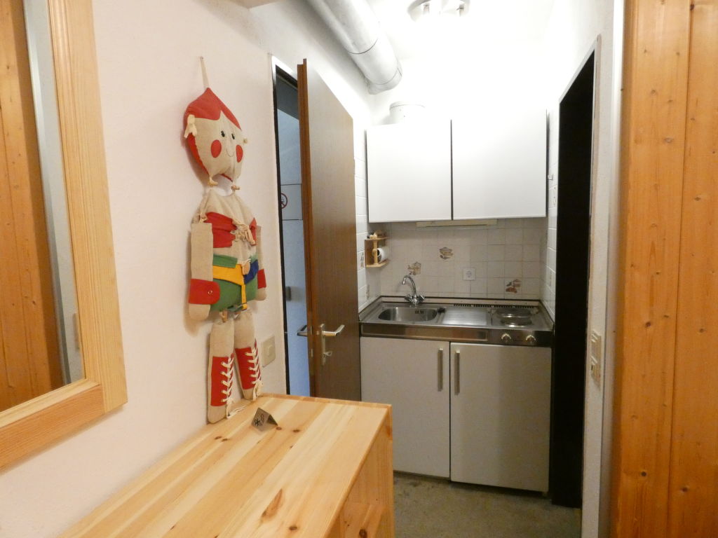 2-Zimmer-Wohnung 38 m2, im Erdgeschoss. Gemütlich eingerichtet: Wohn-/Esszimmer 18 m2 mit Sat-TV. 1 Zimmer 12 m2 mit 1 Doppelbett (180 cm, Länge 200 cm). Kochnische (2 Kochplatten, Wasserkocher, elektrische Kaffeemaschine). Dusche/WC. G-Heizung. Kleine Terrasse 9 m2 teilweise überdacht. Terrassenmöbel. Schöne Sicht auf die Berge. Bitte beachten: Nichtraucher-Unterkunft. Rauchmelder. See 150 m.