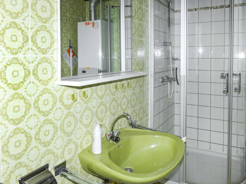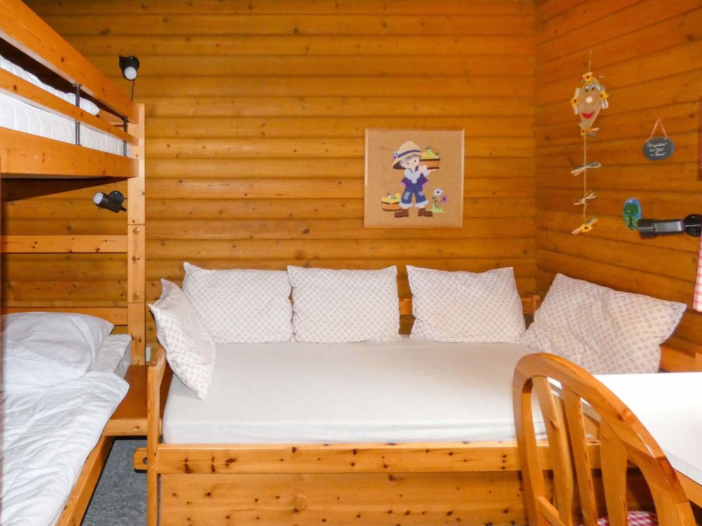 5-Zimmer-Wohnung 113 m2 auf 2 Stockwerken, im Erdgeschoss. Gemütlich eingerichtet: Wohn-/Esszimmer 24 m2 mit 1 Diwanbett (80 cm, Länge 200 cm), Sat-TV (Flachbildschirm). 1 Zimmer 9 m2 mit 2 Betten (90 cm, Länge 200 cm). Kochnische (4 Kochplatten, Backofen, elektrische Kaffeemaschine). Dusche/WC. Obergeschoss: Wohnzimmer 35 m2 mit Sat-TV (Flachbildschirm). Ausgang zum Balkon. 1 Zimmer 13 m2 mit 1 Doppelbett (200 cm, Länge 200 cm). 1 Zimmer 9 m2 mit 1 Bett (90 cm, Länge 200 cm), 1 x 2 Etagenbetten (90 cm, Länge 200 cm). Offene Küche 9 m2 (Backofen, 4 Glaskeramikherd Platten, elektrische Kaffeemaschine) mit Esstisch. Dusche/WC. G-Heizung. Grosser Balkon 20 m2, kleine Terrasse 8 m2 teilweise überdacht. Terrassenmöbel, Balkonmöbel, Liegestühle (4). Schöne Sicht auf die Berge. Zur Verfügung: Haartrockner. Bitte beachten: Nichtraucher-Unterkunft. Maximal 2 Haustiere/Hunde erlaubt. Eigener Eingang, Rauchmelder. Keine interne Verbindung zwischen den separaten Wohneinheiten. Die Ferienwohnung ist die Kombination der beiden Wohnungen DE8491.200.23 und DE8491.200.24 (das Obergeschoss ist nur über eine Aussentreppe erreichbar, der Balkon ist teilweise überdacht). See 150 m. Bei Reservierung der kostenlosen Zusatzbetten (jeweils eines pro Wohnung möglich) stehen Ihnen das Diwanbett im Wohn-/Esszimmer des Erdgeschosses und/oder das Einzelbett im 9 m2 grossen Schlafzimmer im Obergeschoss zur Verfügung. Pro Wohnung ist maximal 1 Haustier erlaubt.