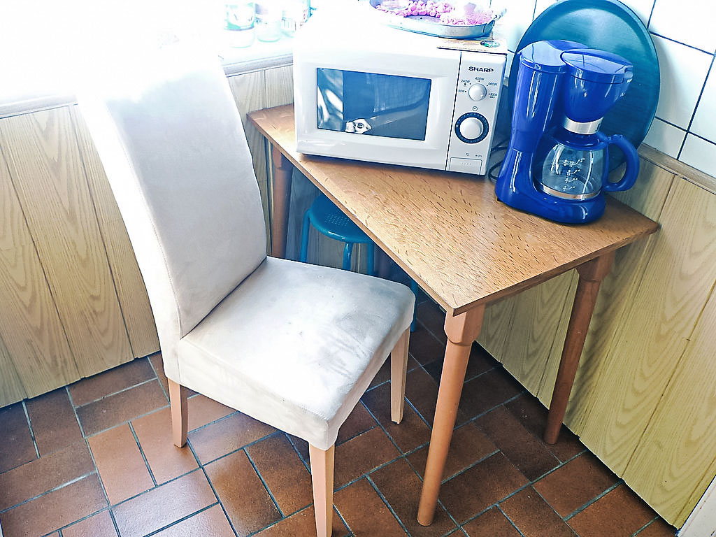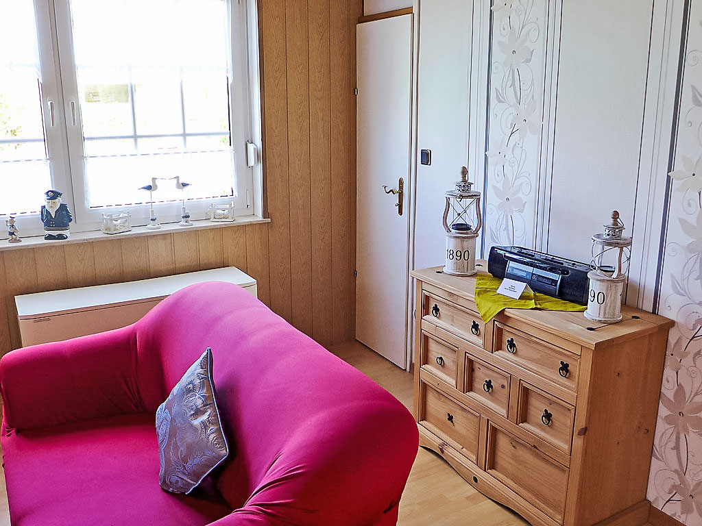 3-Zimmer-Reihenhaus 54 m2, im Erdgeschoss. Gemütlich eingerichtet: Wohn-/Esszimmer 22 m2 mit Sat-TV und Radio. Ausgang zur Terrasse. 1 Zimmer 8 m2 mit 1 Doppelbett (2 x 100 cm, Länge 200 cm). 1 Kinderzimmer 6 m2 mit 1 x 2 Etagenbetten (90 cm, Länge 190 cm). Kleine Küche (4 Kochplatten, Backofen, Mikrowelle, elektrische Kaffeemaschine). Dusche/WC. Kleine Terrasse. Terrassenmöbel. Zur Verfügung: Kinderhochstuhl. Internet (Wireless LAN, gratis). Bitte beachten: Nichtraucher-Haus. 1 Haustier/Hund erlaubt.