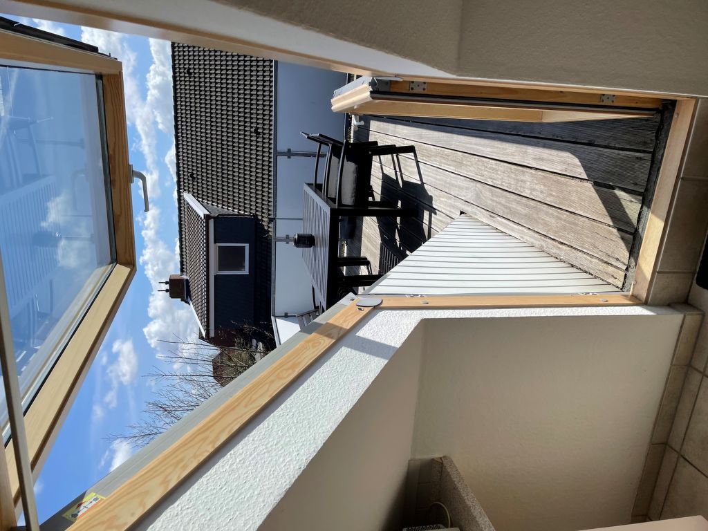 "Norderney", 2-Zimmer-Wohnung 35 m2, im Dachgeschoss. Stilvoll eingerichtet: Wohn-/Esszimmer 15 m2 mit Sat-TV (Flachbildschirm), Stereoanlage. Ausgang zum Balkon. 1 Zimmer 7 m2 mit 1 Doppelbett (2 x 90 cm, Länge 200 cm). Kochnische (Backofen, 4 Glaskeramikherd Platten, Toaster, Wasserkocher, Mikrowelle, elektrische Kaffeemaschine) mit Esstisch. Dusche/WC. Balkon 9 m2. Balkonmöbel. Zur Verfügung: Kinderhochstuhl (extra). Bitte beachten: Nichtraucher-Unterkunft. Maximal 1 Haustier/Hund erlaubt. Das sehr kleine Doppelzimmer und das kleine Bad sind nicht für ältere und gehbehinderte Personen geeignet.