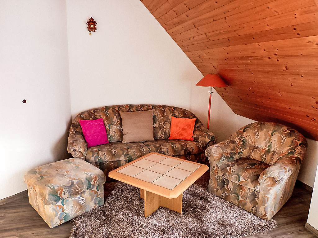 Ferienanlage "Schwarzwaldblick". Am Ortsrand, 1.5 km vom Zentrum von Schonach, ruhige, sonnige Lage am Hang. In der Anlage: Skiraum, Zentralheizung. Zentralparkplätze. Einkaufsgeschäft 1.5 km, Lebensmittelgeschäft 1 km, Supermarkt 2 km, Restaurant 1 km, Bushaltestelle 500 m, Bahnstation "Triberg" 4 km, Freibad 6 km, Hallenbad 6 km, Thermalbad 30 km. Tennis 600 m, Reitstall 500 m, Skilift 600 m, Langlaufloipe 300 m. Nahe gelegene Sehenswürdigkeiten: Triberger Wasserfälle 3 km. Bitte beachten: Fahrzeug empfohlen. In diesem Haus sind weitere Ferienwohnungen mietbar. Alle Häuser/Wohnungen sind individuell eingerichtet. Waldschwimmbad 1 km. Hotelhallenbad mit Sprudelbad, Sauna und Solarium (alles extra) 1.5 km. Die Ferienwohnanlage besteht aus insgesamt 4 Appartementhäusern, die m²-Angaben der einzelnen Wohnungen sind inklusive Balkon oder Terrasse. Bitte beachten: Die Anmietung der Ferienwohnungen ist nur zu touristischen Zwecken erlaubt.
