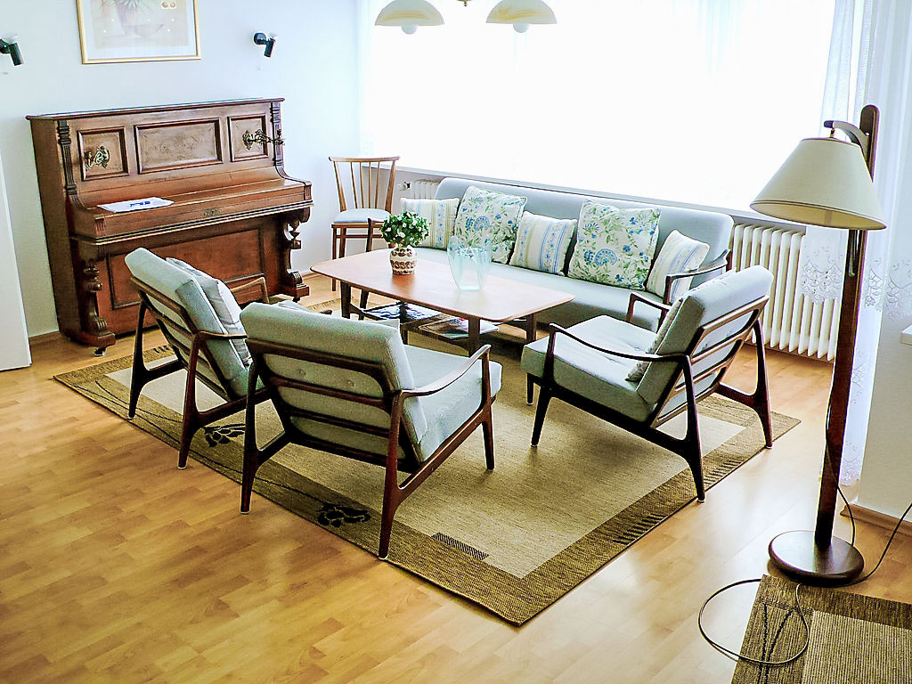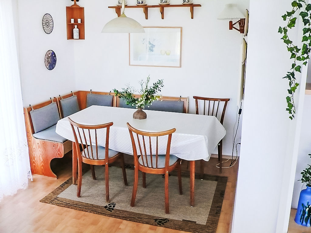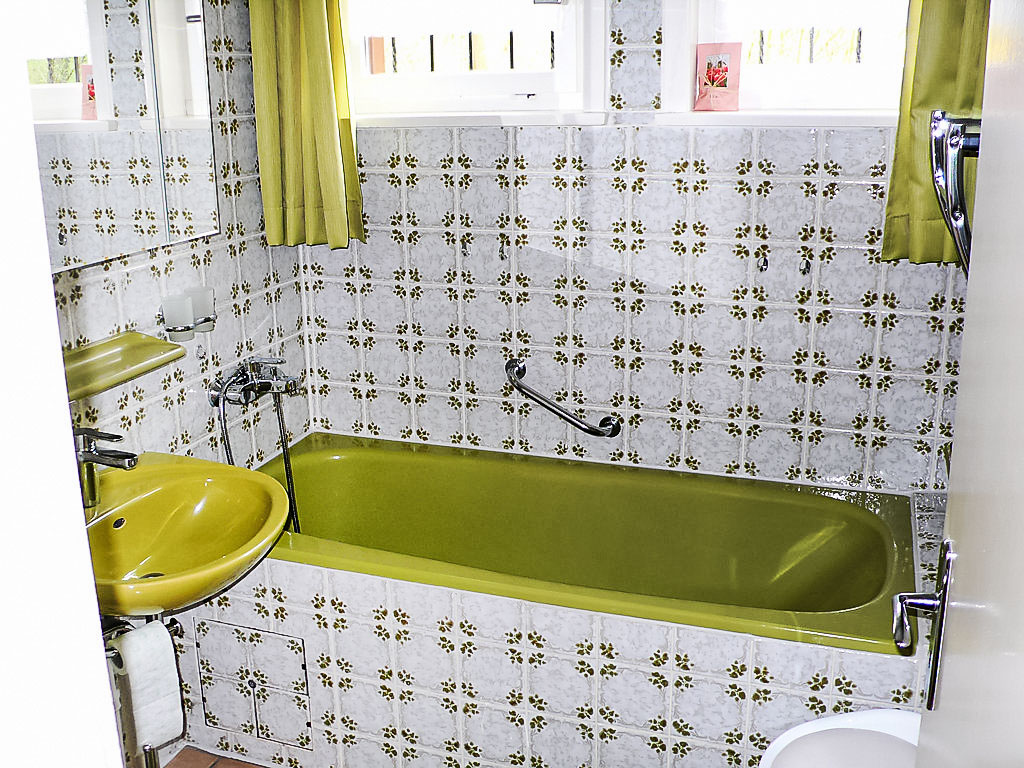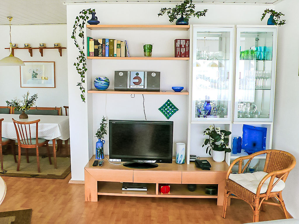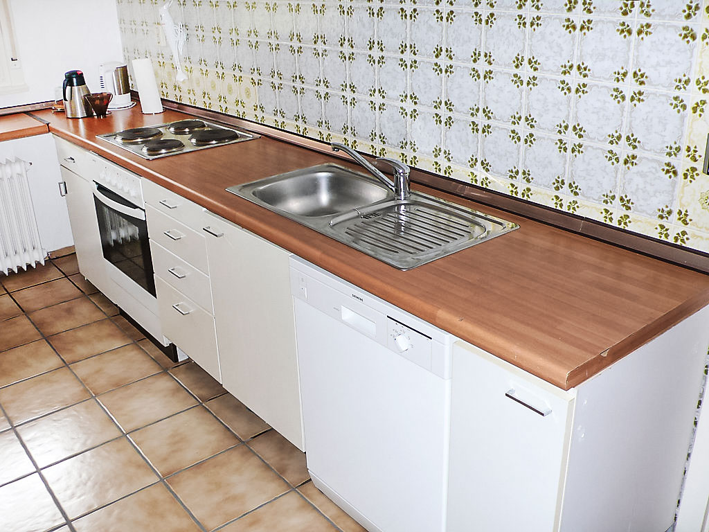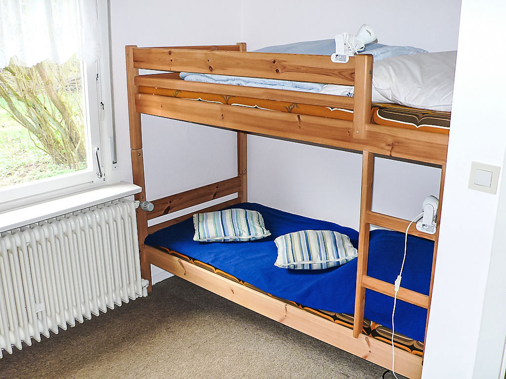 4-Zimmer-Bungalow 108 m2. Grosses Wohn-/Esszimmer mit Sat-TV (Flachbildschirm), CD. Ausgang zur Terrasse. 1 Zimmer mit 1 franz. Bett (180 cm). 1 Zimmer mit 2 Betten. 1 Kinderzimmer mit 1 x 2 Etagenbetten. Küche (4 Kochplatten, Backofen, Geschirrspüler, Toaster, Wasserkocher, Mikrowelle, elektrische Kaffeemaschine) mit Durchreiche. Bad/WC, Dusche/WC. Grosse Terrasse überdacht, kleine Terrasse überdacht. Terrassenmöbel, Liegestühle. Zur Verfügung: Waschmaschine, Telefon. Internet (Wireless LAN, gratis). Parkplatz. Maximal 2 Haustiere/Hunde erlaubt. Aussenkamin. Digital-TV mit 285 in- und ausländischen Programmen.