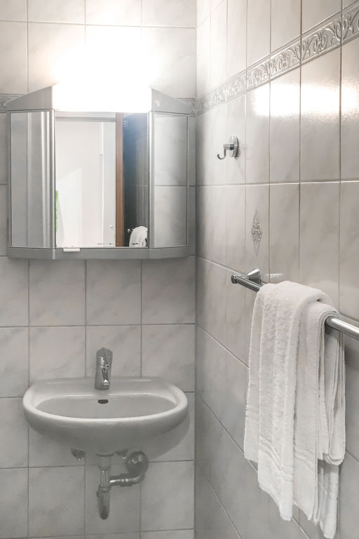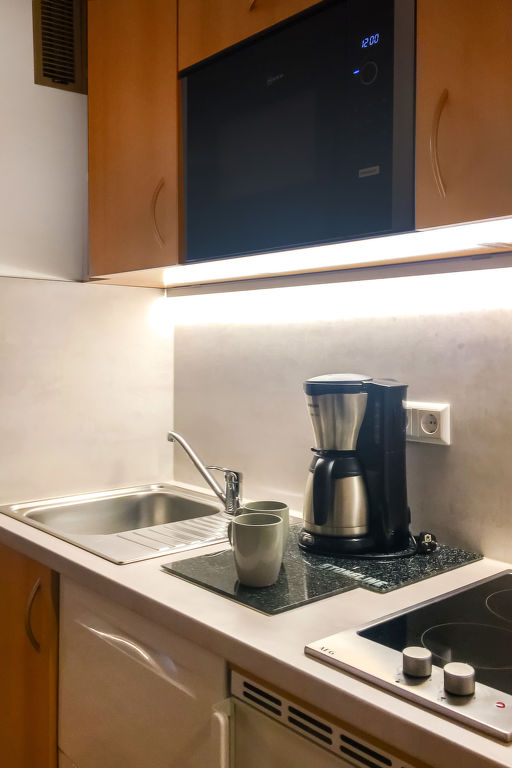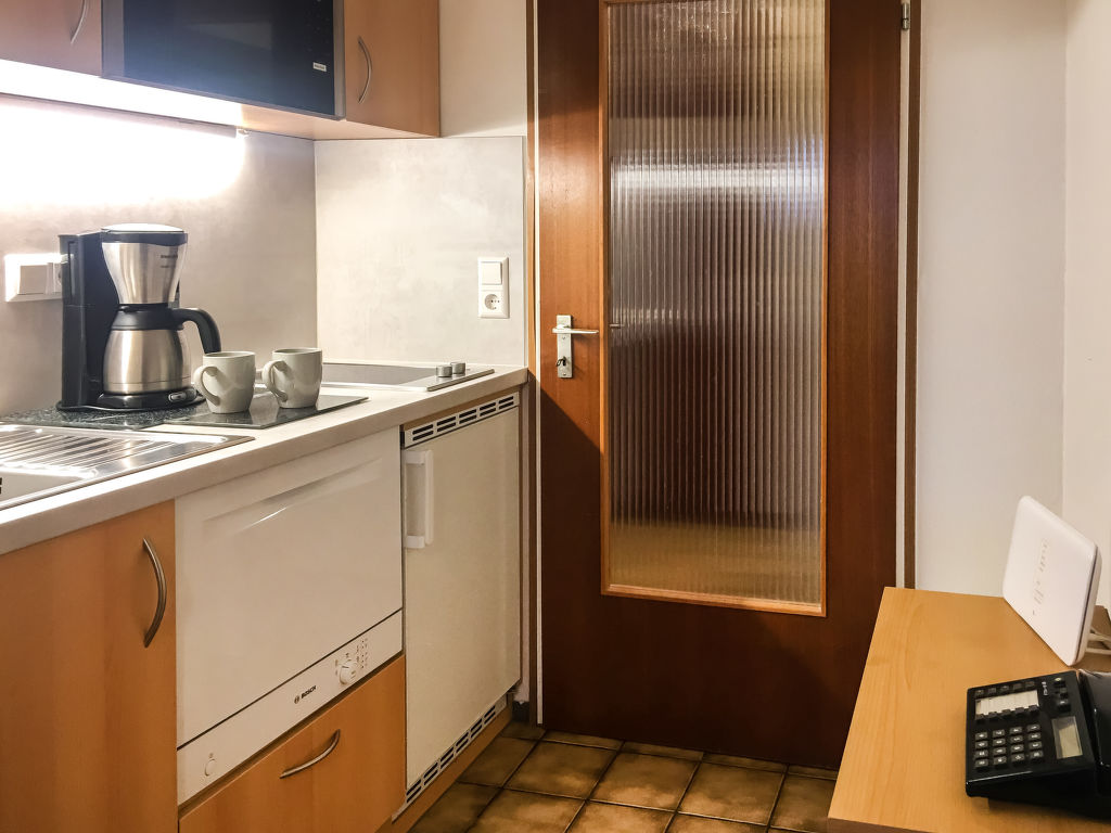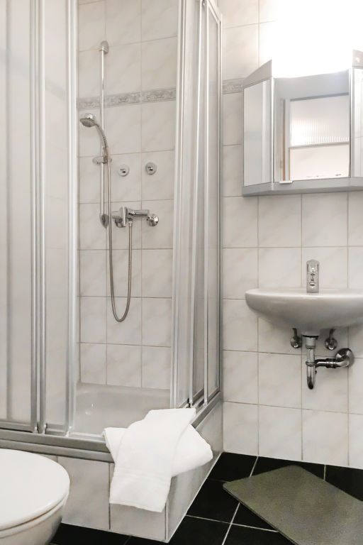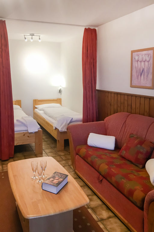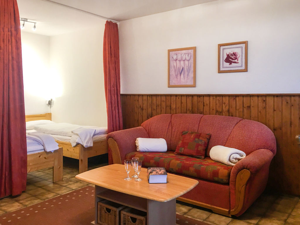 "B 24A", 1-Zimmer-Wohnung 37 m2 im 1. Stock. Zweckmässig eingerichtet: Wohn-/Esszimmer mit 1 Diwanbett und Sat-TV (Flachbildschirm), CD und Stereoanlage. Schlafnische mit Vorhang mit 2 Betten (80 cm, Länge 200 cm). Kochnische (2 Glaskeramikherd Platten, Toaster, Wasserkocher, Mikrowelle, elektrische Kaffeemaschine, Kapseln für die Kaffeemaschine (Senseo) extra). Dusche/WC. Balkon. Balkonmöbel. Zur Verfügung: Telefon, Kinderhochstuhl (extra). Internet (Wireless LAN, gratis). Bitte beachten: Nichtraucher-Unterkunft. Maximal 1 Haustier/Hund erlaubt. Der Balkon ist verglast.