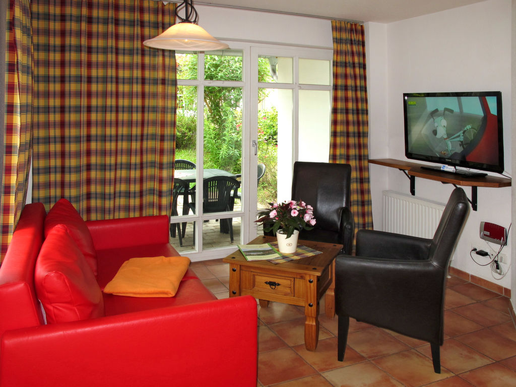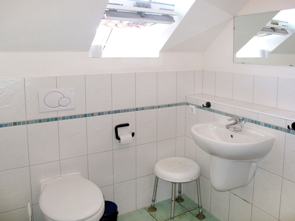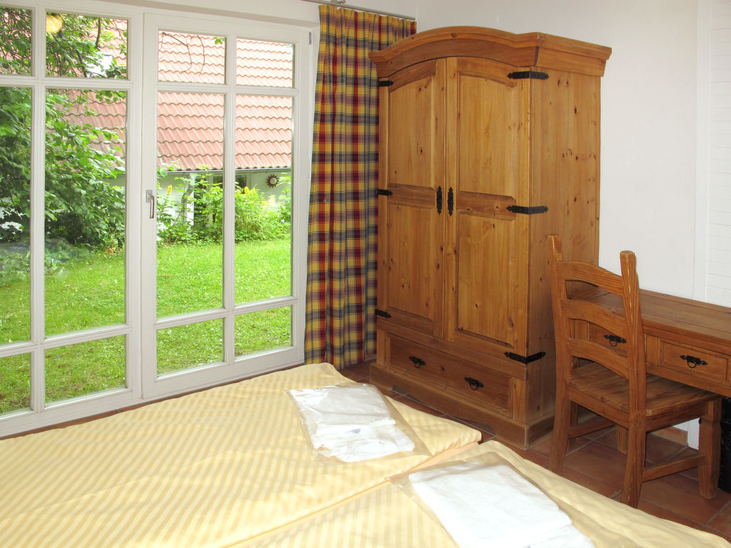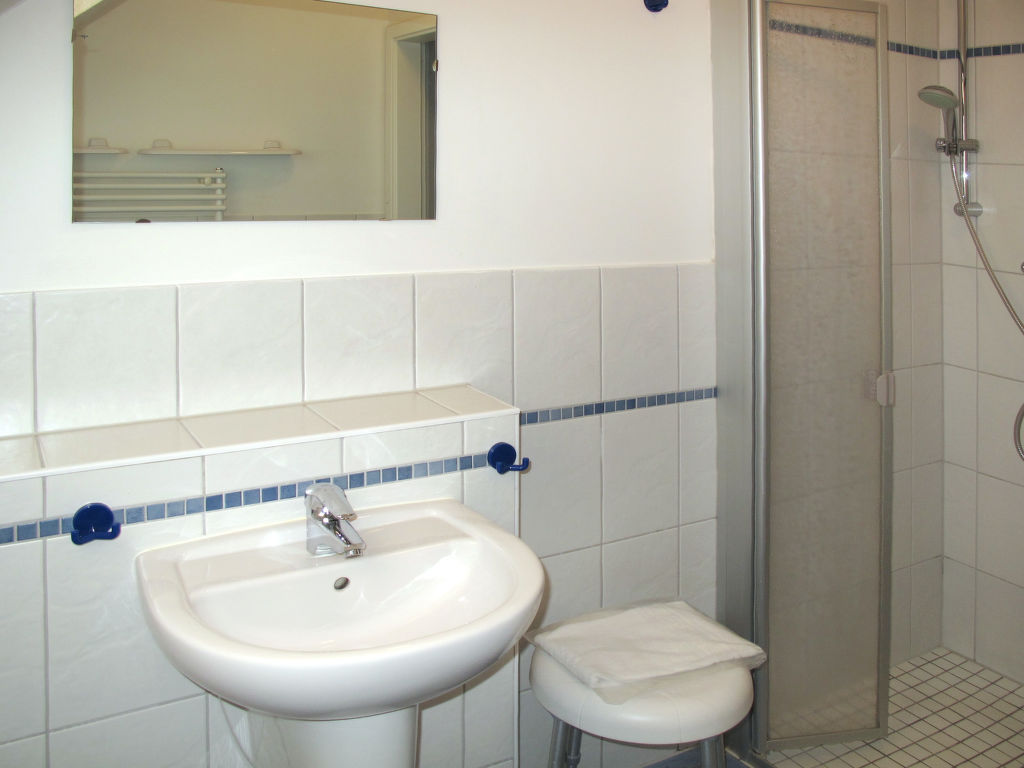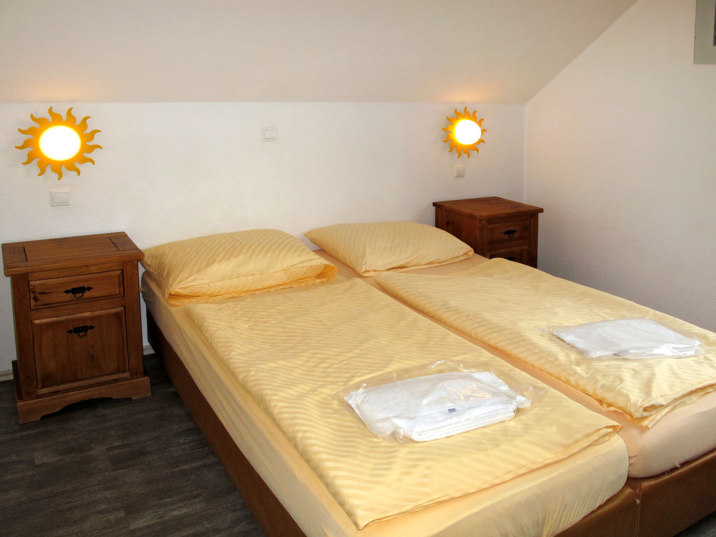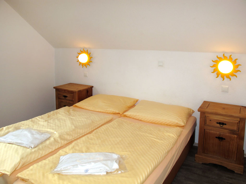 4-Zimmer-Doppelhaushälfte 74 m2 auf 2 Stockwerken. Objekt geeignet für 6 Erwachsene + 2 Kinder. Gemütlich eingerichtet: Wohn-/Schlafzimmer mit 1 Doppeldiwanbett, Esstisch und Kabel-TV. Ausgang zur Terrasse. 1 Doppelzimmer. Kochnische (4 Kochplatten, Geschirrspüler, Toaster, Mikrowelle, elektrische Kaffeemaschine). Dusche/WC. Obergeschoss: 2 abgeschrägte Doppelzimmer. Dusche/WC. G-Heizung. Terrasse. Terrassenmöbel. Zur Verfügung: Kinderhochstuhl, Babybett (extra). Internet (Wireless LAN, gratis). Bitte beachten: Nichtraucher-Haus. Maximal 1 Haustier/Hund erlaubt. Rauchmelder. Maximale Belegung: 6 Erwachsene und 2 Kinder. Der Vermieter akzeptiert keine Buchungen mit mehr als 6 Erwachsenen.