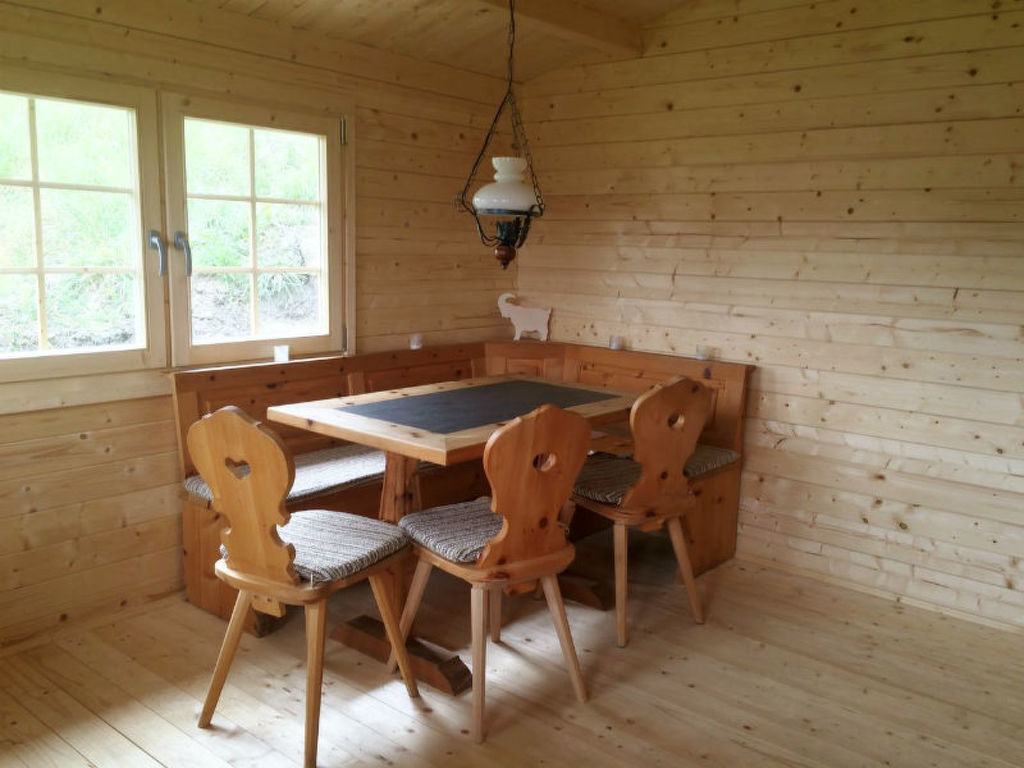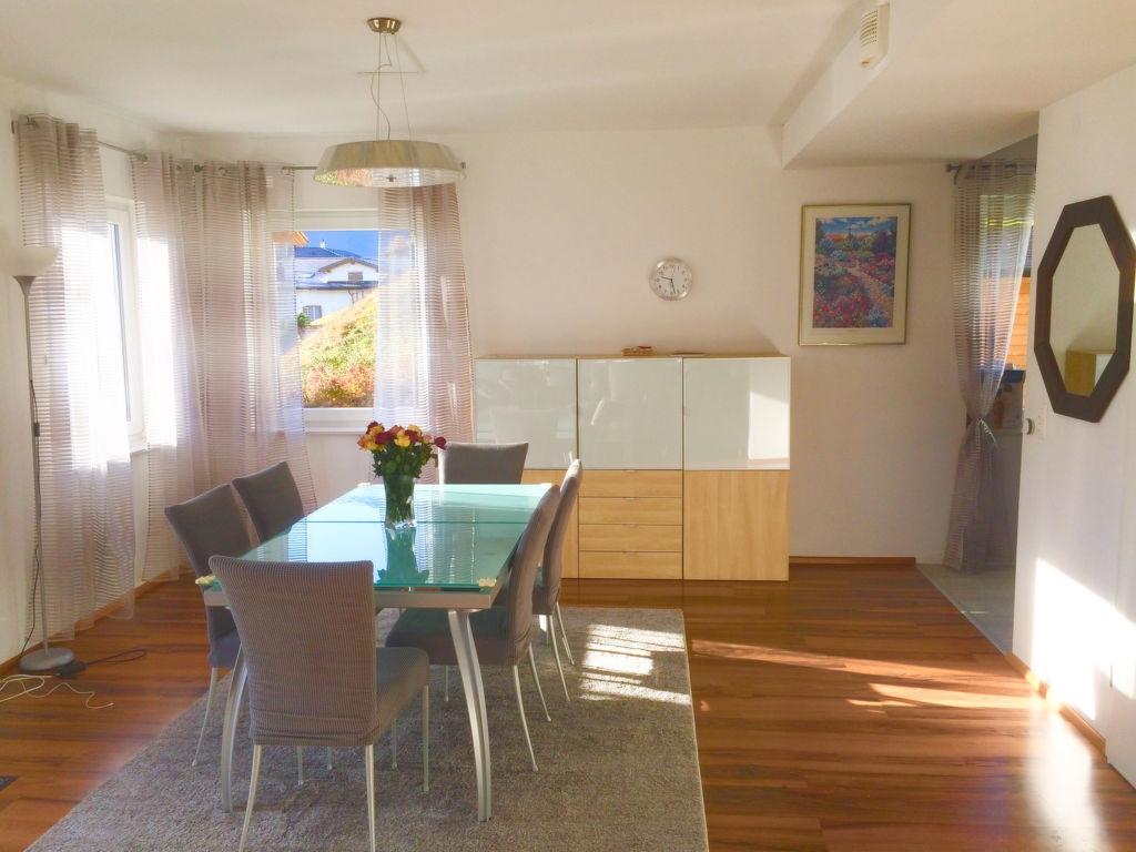 110 m2. Weitere Angaben des Anbieters: Schlafzimmer: Das 5-Zimmer-Ferienhaus hat 3 Schlafzimmern, jedes Schlafzimmer ist mit Kleiderschrank oder Kommode ausgestattet. Bettwäsche vorhanden und im Preis inbegriffen. Wohnzimmer: Das grosse Wohnzimmer verfügt über eine Sitzecke und ein gemütliches Ecksofa, für Unterhaltung sorgt Swisscom-TV und WLAN. Küche: Die gut ausgestattet Küche bietet einen Kühl- und Gefrierschrank, Geschirrspüler, Microwellenherd (bei Bedarf voranmelden), Kaffeeautomat (Kaffeekapseln, Marke Delicio), Wasserkocher sowie weitere elektrische Geräten und Küchenutensilien. Küchenwäsche vorhanden und im Preis inbegriffen. Badezimmer: Das Haus verfügt über einen Gäste-WC im Erdgeschoss und im 1 Stock befindet sich das grosse Badezimmer mit Dusche, Badewanne und 2 Waschbecken. Frotteewäsche vorhanden und im Preis inbegriffen. Andere Räume: Auf Wunsch bietet die Kinderfreundliche Wohnung auche einen Babybett und Kinderhochstuhl an. Waschmaschine, Skiabstellraum mit Skischuhheizung sind im Haus vorhanden und im Preis inbegriffen. Das separate Holz-Chalet im Garten mit gemütlichem Ambiente ist mit Eckbank und Schiefertisch ausgestattet und lädt ein, z.B. für einen abwechslungsreichen Fondue-Abend oder eine spannende Jassrunde. Der sonnige Garten und Sitzplatz gewährt einen uneingeschränkten Bergblick auf ein einzigartiges Panorama.