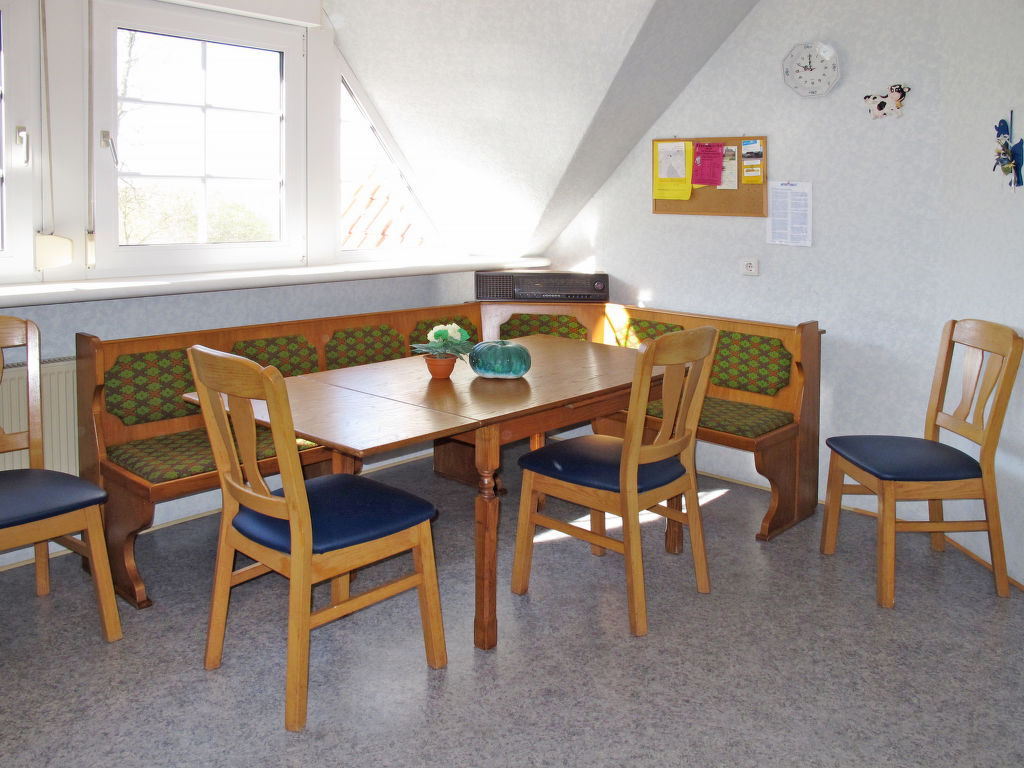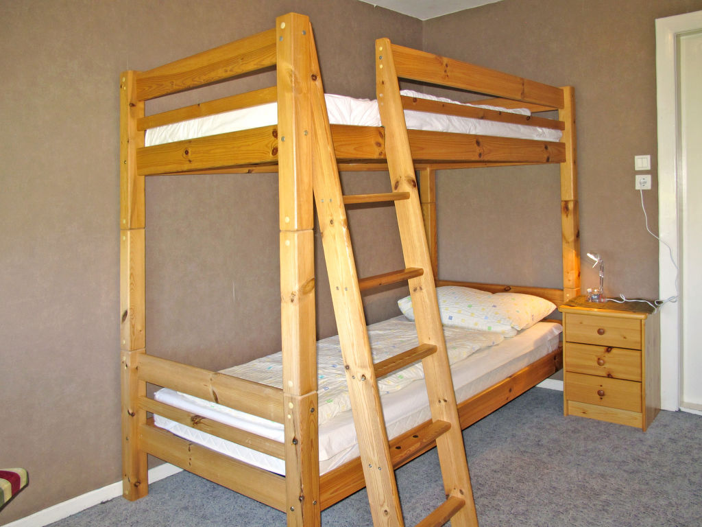 "Hof Bajema", 5-Zimmer-Wohnung 120 m2 auf 2 Stockwerken, im Obergeschoss. Obergeschoss: Wohnzimmer mit Sat-TV, Radio und DVD. Durchgangszimmer mit 1 Doppelbett. 1 Zimmer mit 1 franz. Bett. 1 Zimmer mit 1 x 2 Etagenbetten. Küche (Backofen, Geschirrspüler, 4 Glaskeramikherd Platten, Toaster, Wasserkocher, Mikrowelle, elektrische Kaffeemaschine) mit Esstisch. Dusche/WC. Dachgeschoss: 1 abgeschrägtes Zimmer mit 1 Doppelbett. Ölheizung. Terrasse. Terrassenmöbel, Gartengrill. Zur Verfügung: Kinderhochstuhl, Babybett. Internet (Wireless LAN, extra). Bitte beachten: Nichtraucher-Unterkunft. Bei Buchung für 6 Personen bleibt das Doppelzimmer im Obergeschoss verschlossen.
