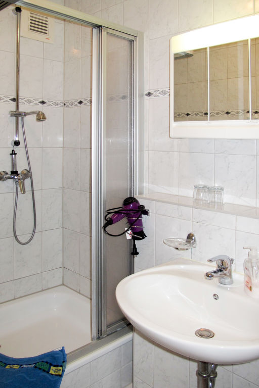 "Achterwasser (ZEM100)", 2-Zimmer-Wohnung 60 m2, im Erdgeschoss. Hell, zweckmässig und gemütlich eingerichtet: Wohn-/Schlafzimmer mit 1 Doppeldiwanbett, Esstisch, Sat-TV, Radio und CD. Ausgang zur Terrasse. 1 Doppelzimmer. Offene Küche (4 Kochplatten, Backofen, Toaster, Wasserkocher, Mikrowelle, elektrische Kaffeemaschine). Dusche/WC. G-Heizung. Teppichboden. Terrasse 12 m2. Terrassenmöbel, Abstellkammer. Zur Verfügung: Kinderhochstuhl, Babybett. Internet (Wireless LAN, gratis). Bitte beachten: Nichtraucher-Unterkunft. 1 Haustier/Hund erlaubt. Rauchmelder.