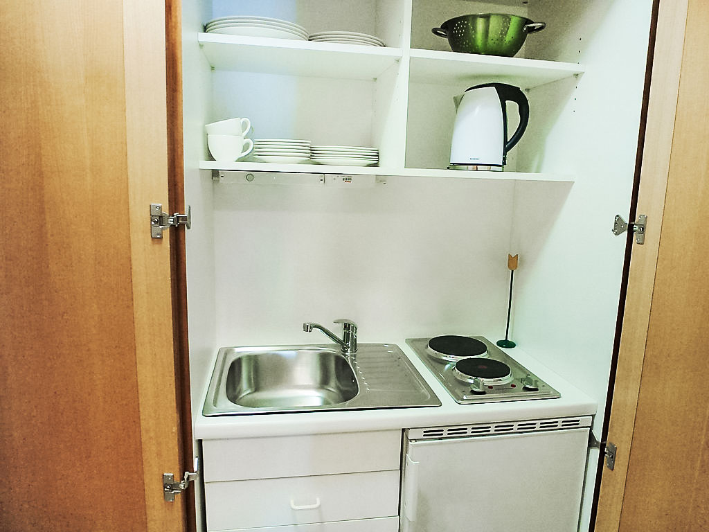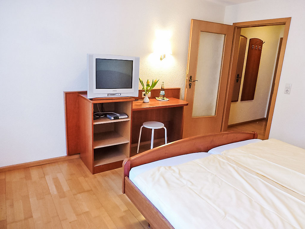 2-Zimmer-Wohnung 50 m2 im 1. Stock. Objekt geeignet für 2 Erwachsene + 2 Kinder. Kleines Wohn-/Schlafzimmer mit 1 Bett, 1 Diwanbett, Esstisch, Dusche/WC und Sat-TV. 1 Doppelzimmer mit Dusche/WC und Sat-TV. Kleine Kochnische im Eingang (2 Kochplatten, elektrische Kaffeemaschine). Zur Verfügung: Internet (Wireless LAN, gratis). Bitte beachten: Nichtraucher-Unterkunft. Maximal 1 Haustier/Hund erlaubt.
