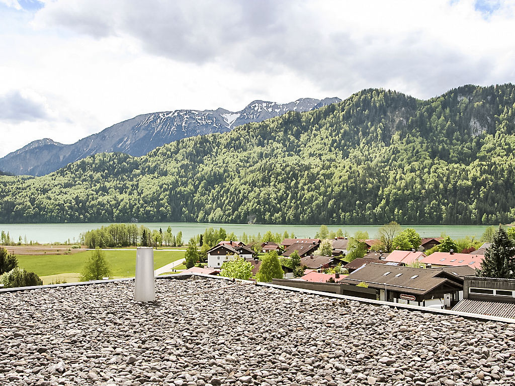 Ferienanlage. Im Ortsteil Weissensee/See, 6 km vom Zentrum von Füssen, 800 m vom See, 800 m vom Strand. Zur Mitbenutzung: Liegewiese, Hallenbad (10 x 6 m). Tennis, Grill, Kinderspielplatz. In der Anlage: Sauna, Tischtennis (alles inkl.), Fahrstuhl, Zentralheizung, Waschmaschine (extra), Wäschetrockner (zur Mitbenutzung, extra). Parkplatz beim Haus. Restaurant 800 m, Bushaltestelle 100 m, Kieselstrand, Grasstrand 800 m. Bergbahn 15 km, Langlaufloipe 50 m. Die Appartementanlage mit insgesamt 230 Wohnungen liegt nur 800 m vom Weissensee mit Wiesen- und Kiesstrand entfernt (kostenlose Strandbadbenutzung (WC und Umkleiden vorhanden), Surfen erlaubt) und verfügt weiterhin über Minigolfanlage und Fahrradraum sowie Wintergarten und eine Dachterrasse zum Sonnen mit Panoramablick auf den Weissensee und die Berge. Zusätzlich zur Gemeinschaftssauna steht auch noch eine Einzelsauna allen Feriengästen zur Verfügung. Alle Einrichtungen sind im Mietpreis enthalten (Nutzung teilweise nach Terminabsprache mit der Hausverwaltung, das Hallenbad ist von Anfang November-Mitte Dezember geschlossen). Kostenloses WLAN im Bereich vor der Tourist-Info Weissensee (700 m). Mit der kostenlosen FüssenCard haben Sie zahlreiche Vorteile in Füssen und im Ostallgäu: kostenlose Nutzung des ÖPNV, Teilnahme am Gästeprogramm, kostenfreies Parken auf verschiedenen Parkplätzen, kostenloser oder ermässigter Eintritt bei Veranstaltungen, Bergbahnen, Bädern, Schifffahrt etc.