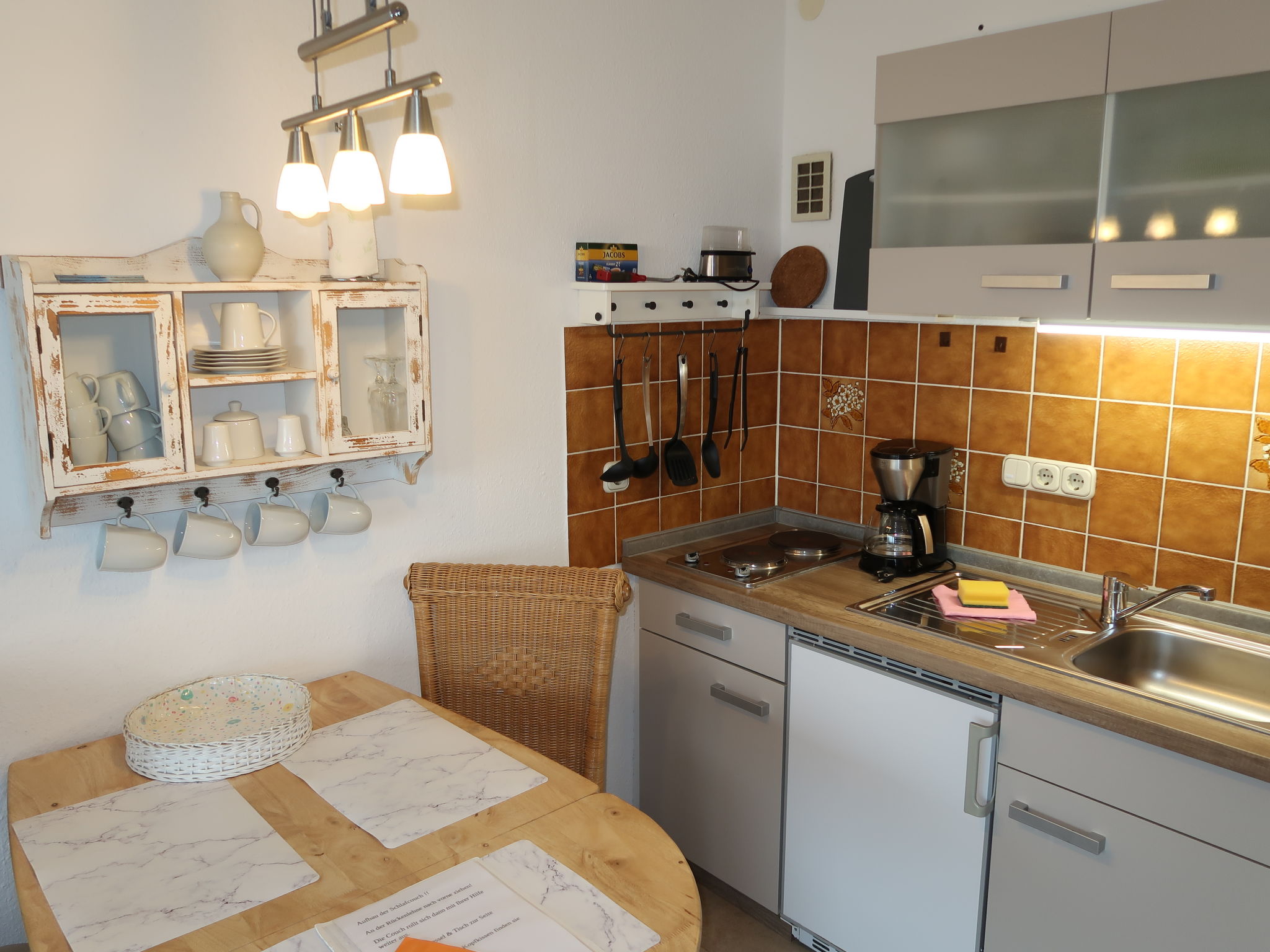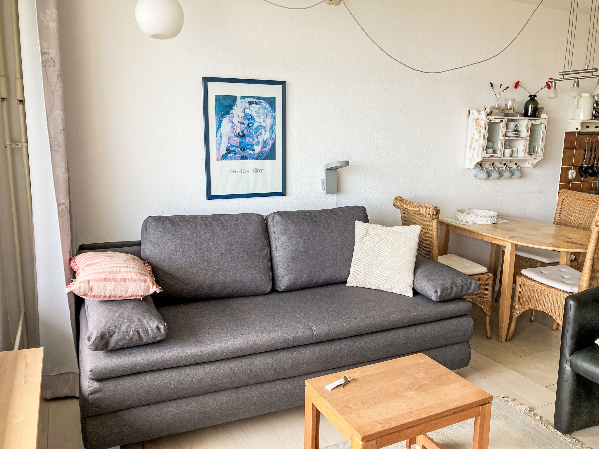 "Ostseeresidenz Damp (DMP171)", 1-Zimmer-Wohnung 35 m2 im 3. Stock. Gemütlich eingerichtet: Wohn-/Schlafzimmer mit 1 Diwanbett (120 cm, Länge 200 cm), 1 Doppeldiwanbett (160 cm, Länge 200 cm), Esstisch, Sat-TV, Stereoanlage und DVD. Ausgang zum Balkon. Offene Küche (2 Kochplatten, Mini-Backofen, Backofen, Toaster, Wasserkocher, Mikrowelle, elektrische Kaffeemaschine). Dusche/WC. Balkonmöbel. Sicht auf das Meer. Zur Verfügung: Internet (Wireless LAN, gratis). Bitte beachten: Nichtraucher-Unterkunft. Maximal 1 Haustier/Hund erlaubt. Rauchmelder, Feuerlöscher.