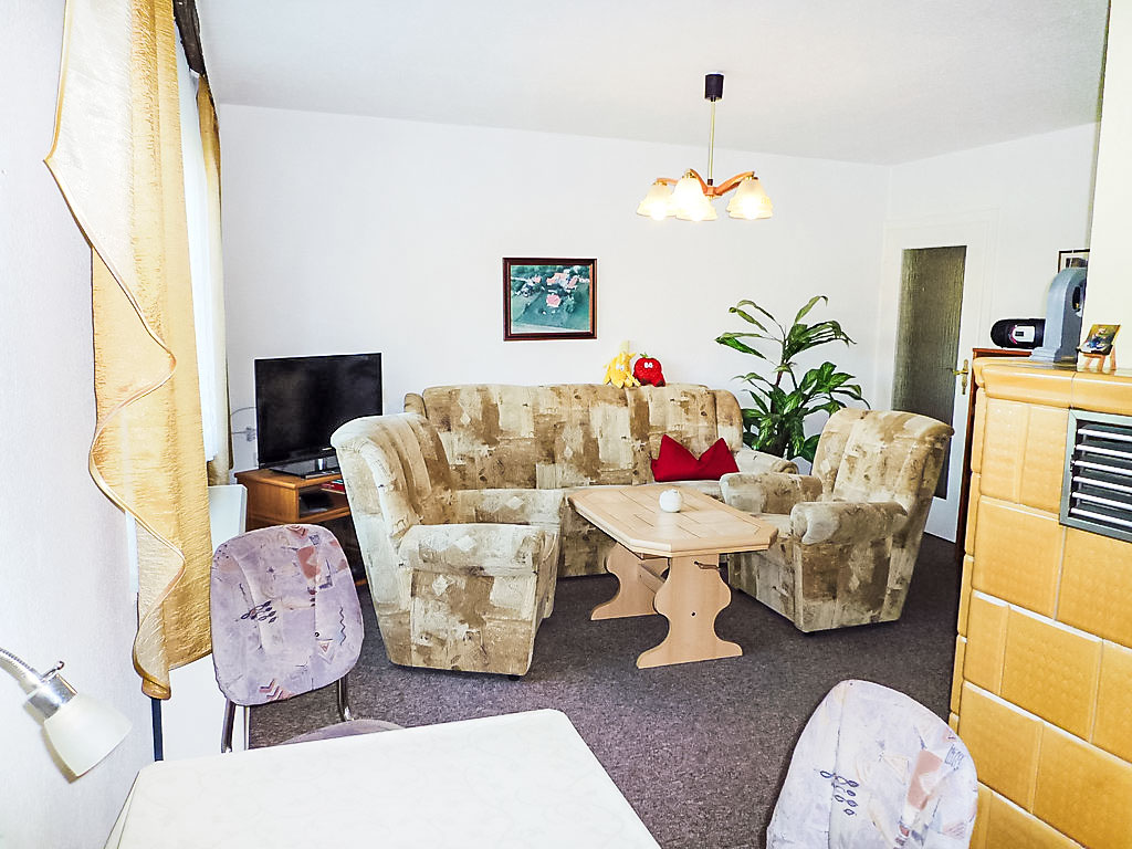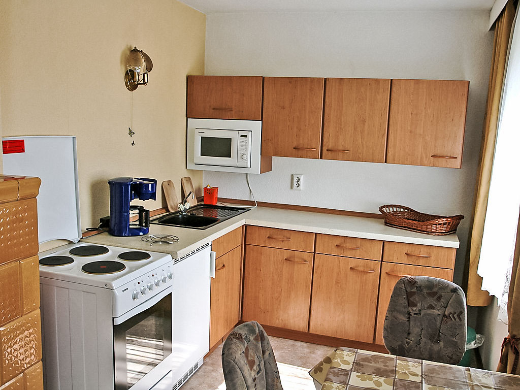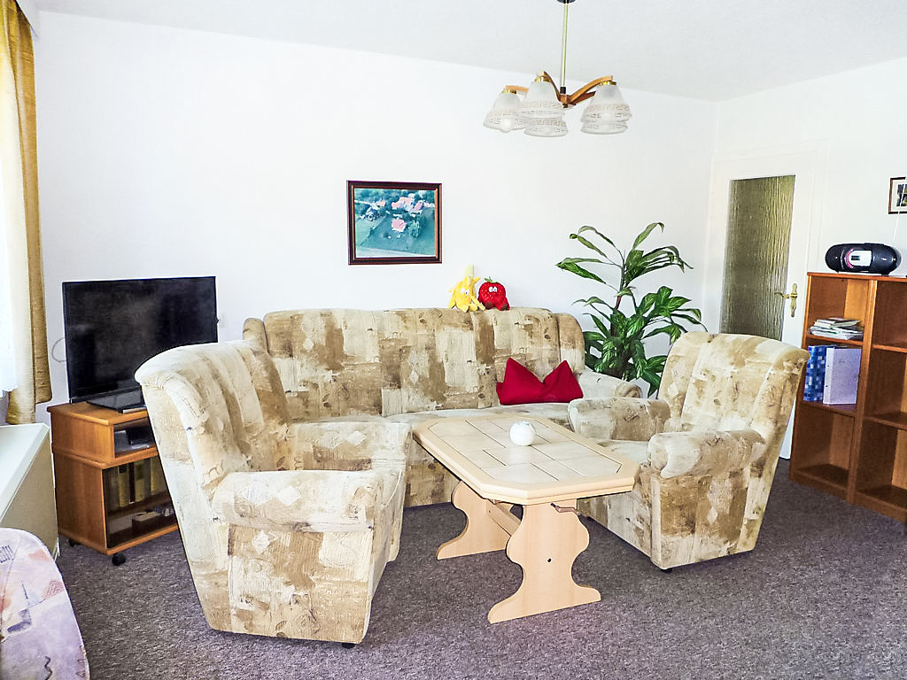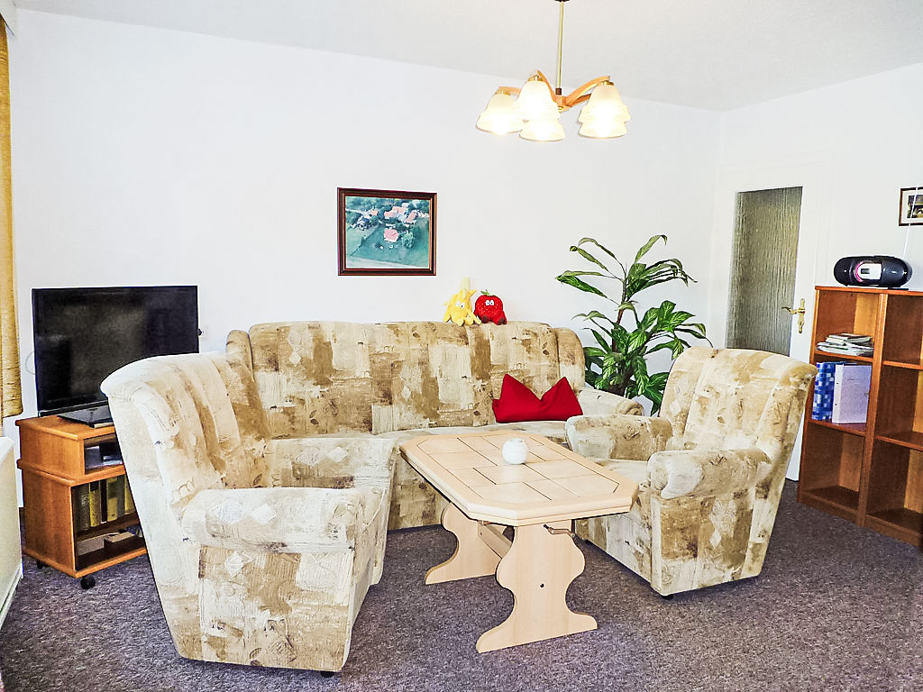 4-Zimmer-Doppelhaushälfte 65 m2 auf 2 Stockwerken, im Erdgeschoss. Wohn-/Esszimmer mit Kabel-TV und Radio. Offene Küche (Backofen, Mikrowelle, elektrische Kaffeemaschine). Dusche/WC. Obergeschoss: 1 abgeschrägtes Zimmer mit 2 Betten. 1 abgeschrägtes Doppelzimmer. Ausgang zum Balkon. E-Heizung. Balkon, Terrasse. Terrassenmöbel. Zur Verfügung: Internet (Wireless LAN, gratis). Bitte beachten: Nichtraucher-Haus. Maximal 1 Haustier/Hund erlaubt. Eigener Eingang. Zugang vom Balkon zur verglasten Sonnenterrasse. Diele mit Sitzecke im Erdgeschoss. Abgeschrägter Aufenthaltsraum im Obergeschoss. Zugang zum Zweibettzimmer durch das Doppelzimmer. E-Radiator im Badezimmer.
