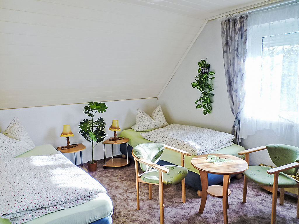 Doppelhaus "Zerna". Am Ortsrand, 2 km vom Zentrum, direkt am Waldrand. Zur Mitbenutzung: Garten 500 m2 (eingezäunt), Liegewiese. Tischtennis. Im Hause: Einstellraum für Fahrräder. Zufahrt bis zum Haus (Naturweg). Parkplatz beim Haus. Einkaufsgeschäft 1 km, Restaurant 1 km, Fahrradverleih 2 km, Bushaltestelle 1.5 km, Hallenbad 5 km. Wanderwege ab Haus, Radweg 10 m. Nahe gelegene Sehenswürdigkeiten: Waldeisenbahn-Haltestelle (Schmalspur) 400 m, Landschaftspark (Weltkulturerbe mit Brückenverbindung zum polnischen Teil) 300 m, Grenzübergang Polen mit Verkaufsmarkt 3 km. Bekannte Seen in der Umgebung sind gut erreichbar: Schlauchboot-Touren auf der Neisse (Bootsverleih), Seebad 4 km. Kleine Spielscheune (extra). Erlebnisbad (Innen- und Aussenbecken, Saunalandschaft) 3 km. Eigene Tierhaltung des Hauseigentümers (Zugang zu den Tieren nach Absprache möglich).