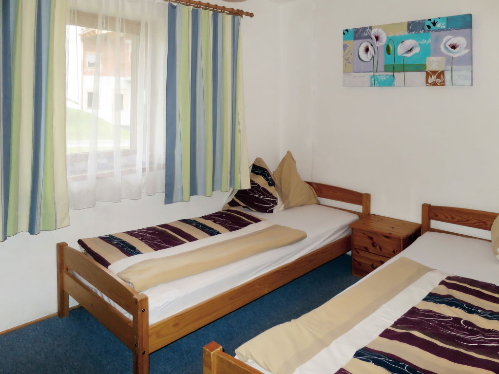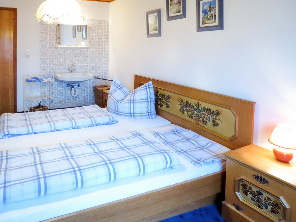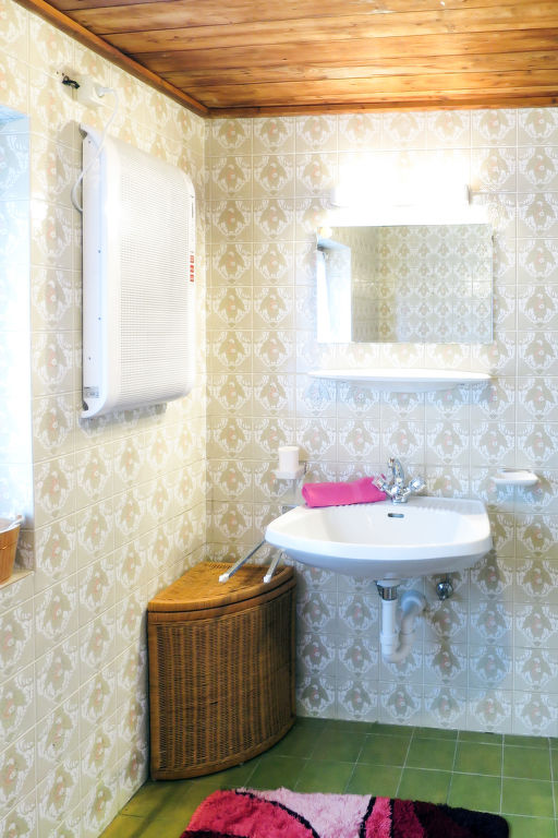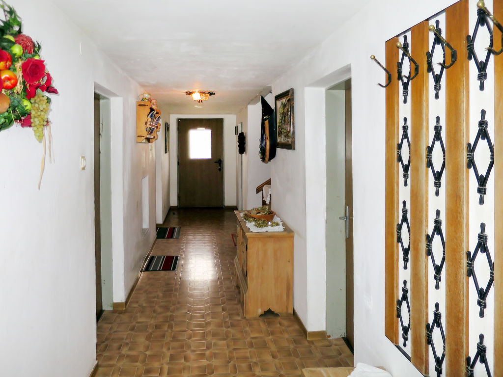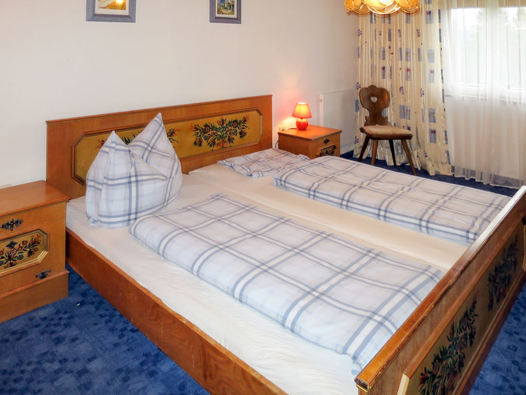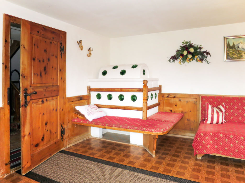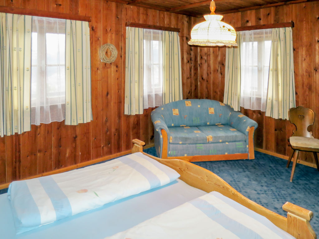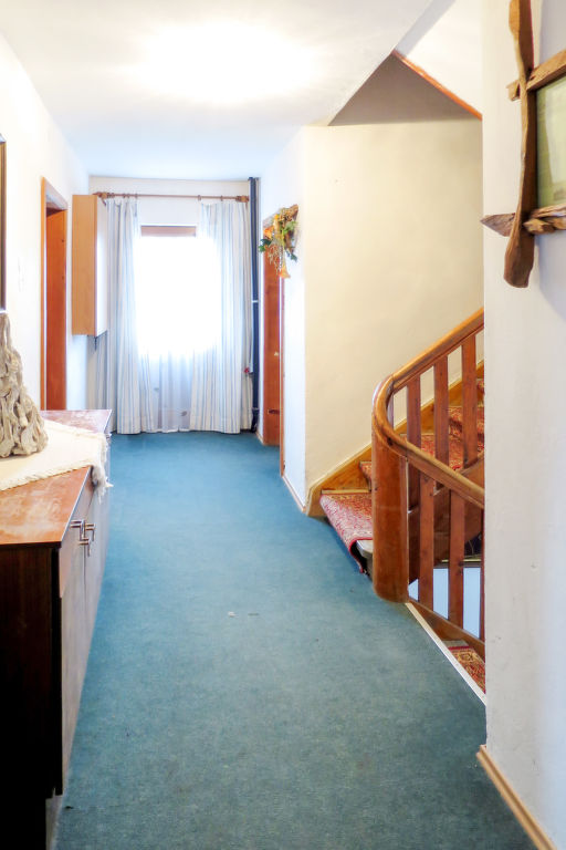7-Zimmer-Haus, 2 Etagen, ca. 140 m². Erdgeschoss: Bauernstube mit Tisch, Stühlen, Liege und Kachelofen (wird vom Besitzer beheizt).Küche (4 Platten, Backofen, Kühl-/Gefrierkombination, Kaffeemaschine, Wasserkocher, Toaster) mit Essplatz. Dusche. 1. Etage: Diele mit Balkonausgang. 2 Doppelzimmer. Zweibettzimmer. Schlafzimmer mit Doppelbett und Bettcouch. Schlafzimmer mit Etagenbett. Sep. WC.