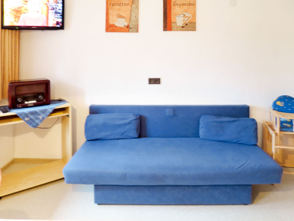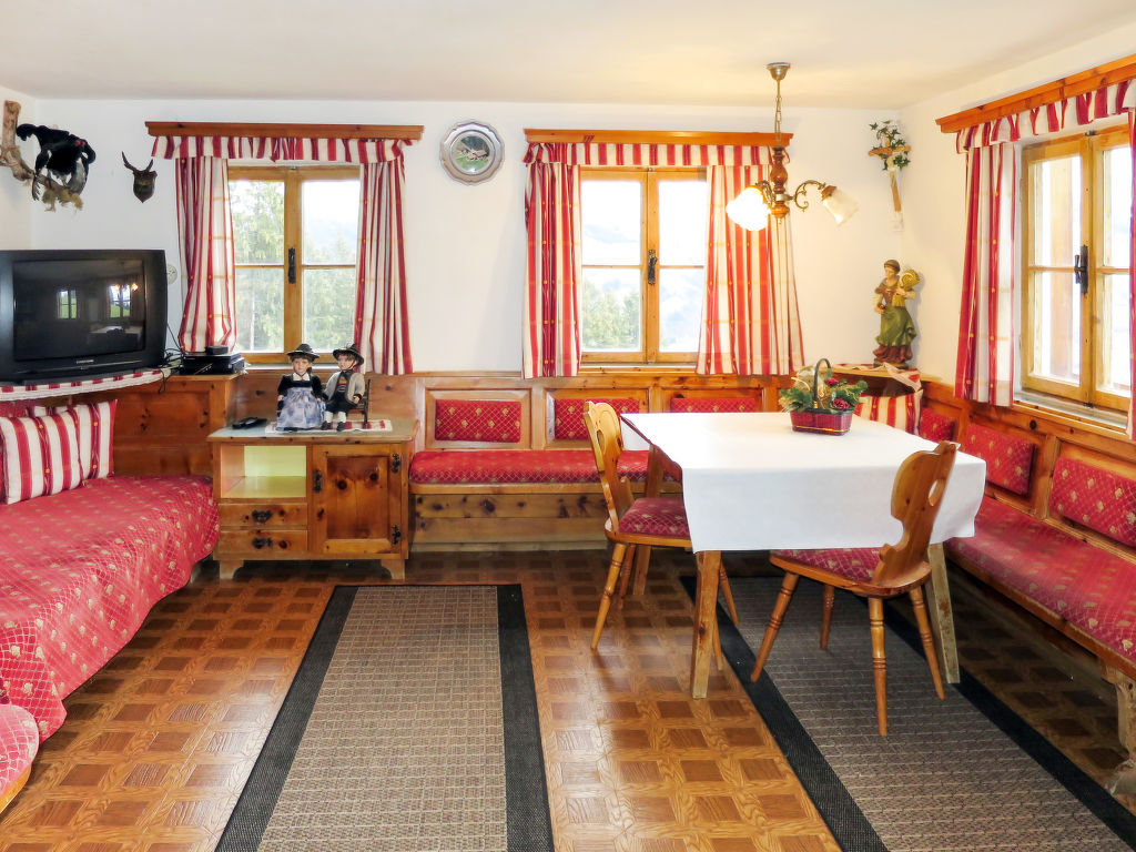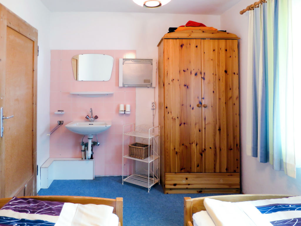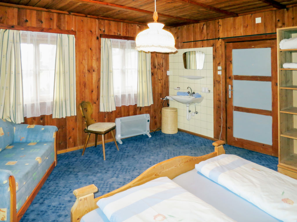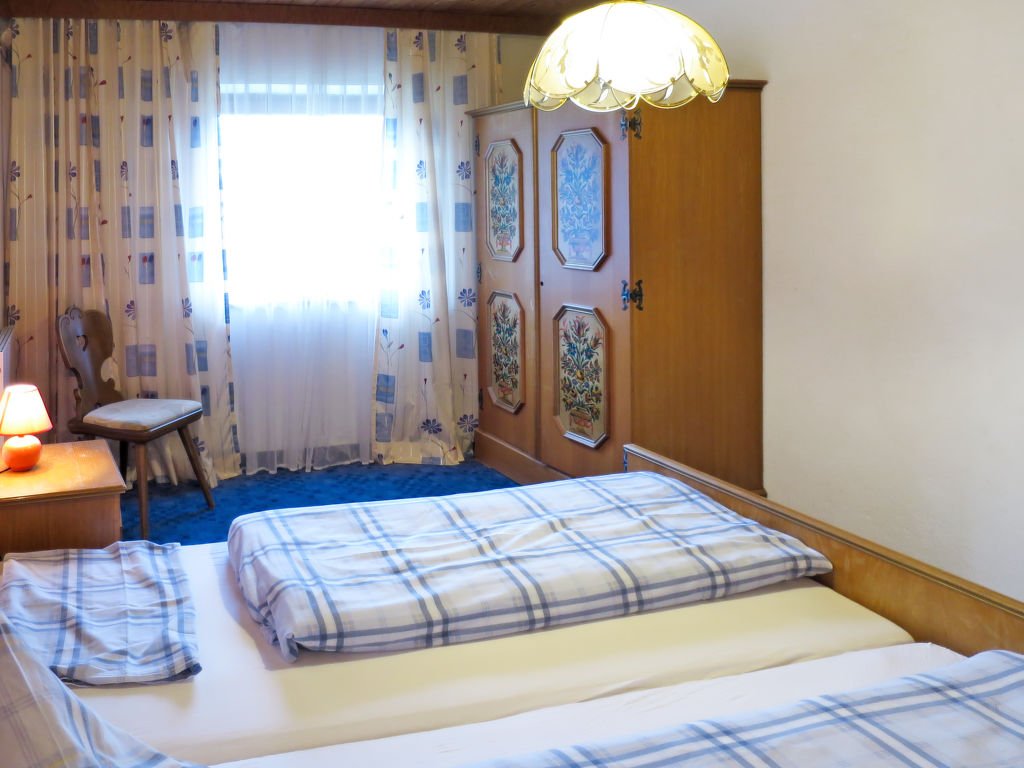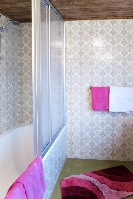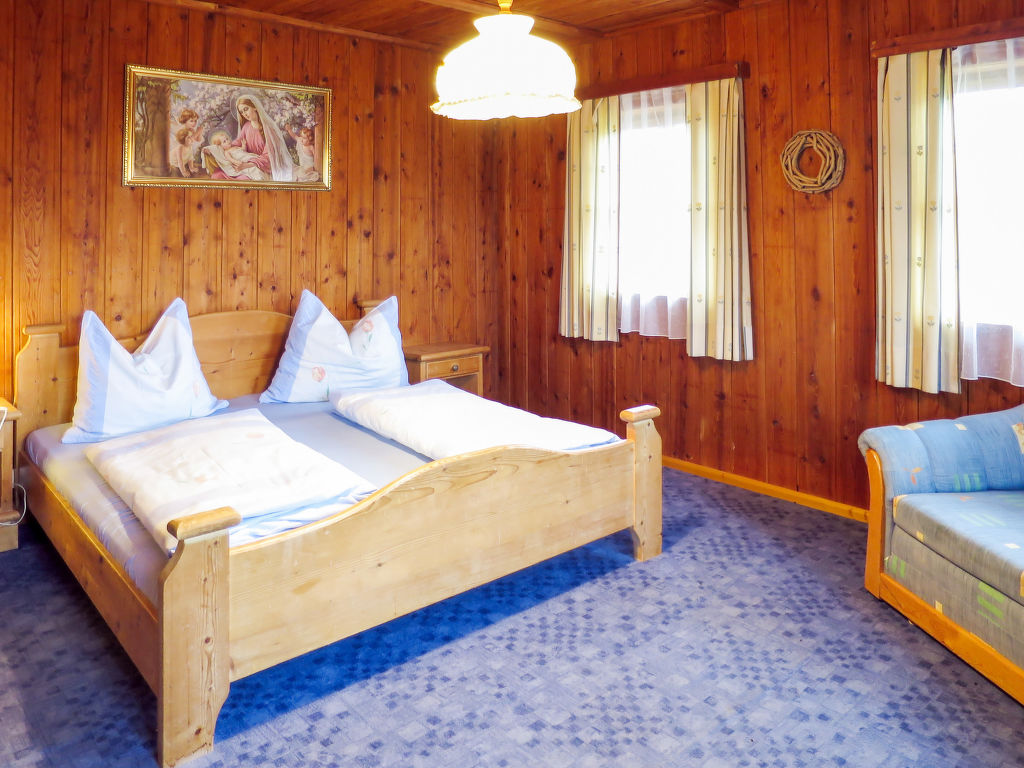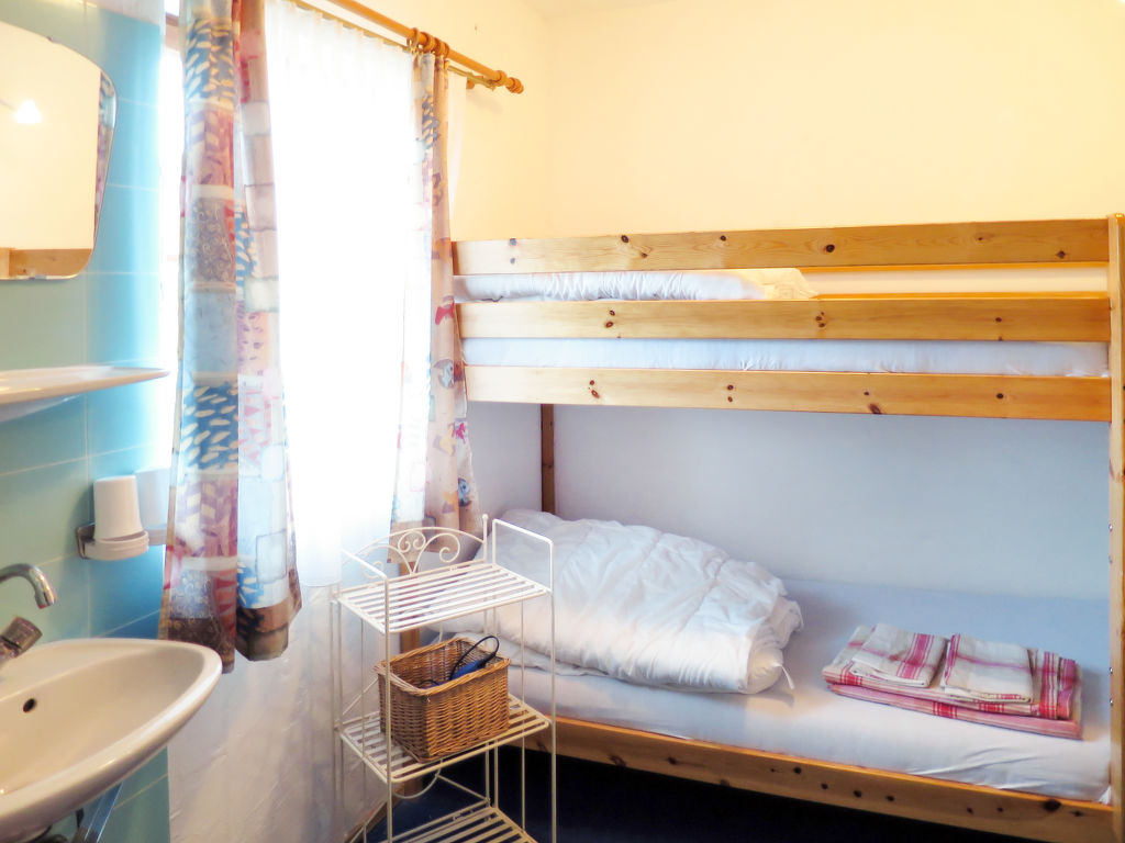7-Zimmer-Haus, 2 Etagen, ca. 140 m². Erdgeschoss: Bauernstube mit Tisch, Stühlen, Liege und Kachelofen (wird vom Besitzer beheizt).Küche (4 Platten, Backofen, Kühl-/Gefrierkombination, Kaffeemaschine, Wasserkocher, Toaster) mit Essplatz. Dusche. 1. Etage: Diele mit Balkonausgang. 2 Doppelzimmer. Zweibettzimmer. Schlafzimmer mit Doppelbett und Bettcouch. Schlafzimmer mit Etagenbett. Sep. WC.